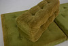 Sits- och ryggkuddar i polyeterskum med knappsömmar. Grön bomullsvelour klädsel.