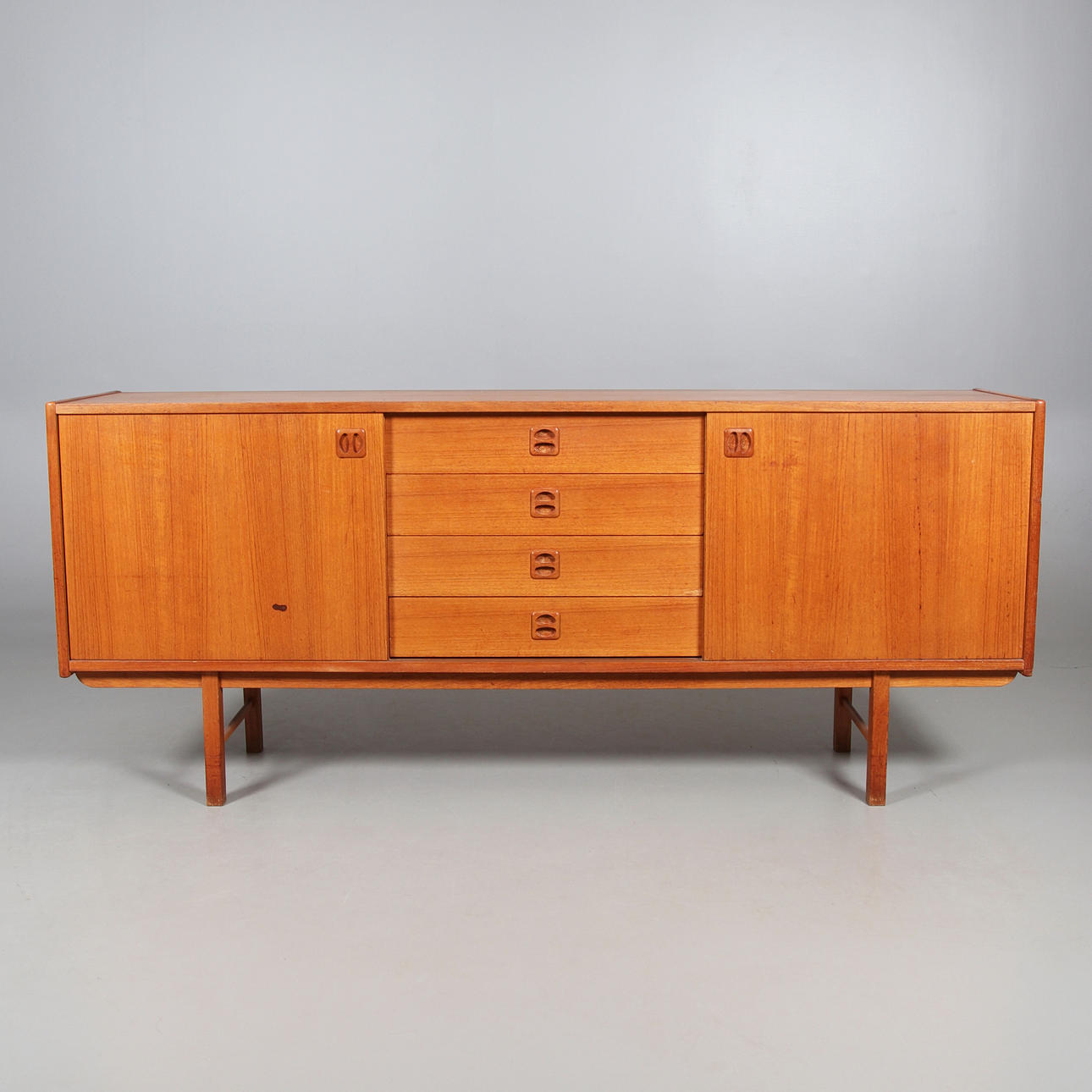 4 lådor samt två skjutdörrar. Längd 182, bredd 42, höjd 76 cm.