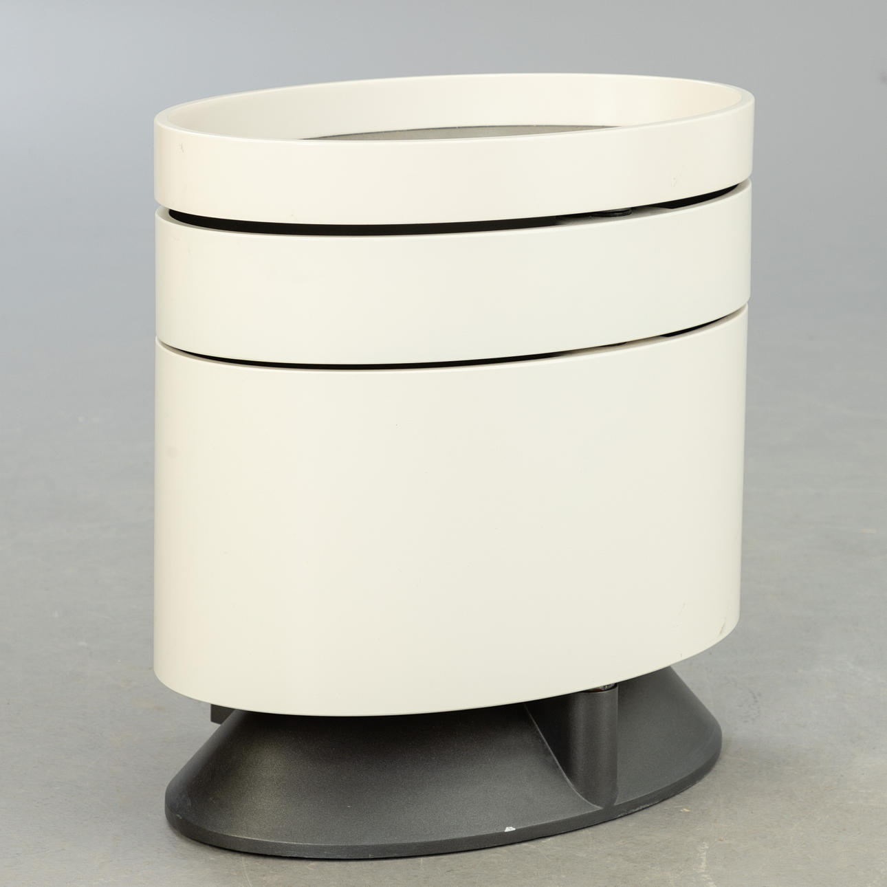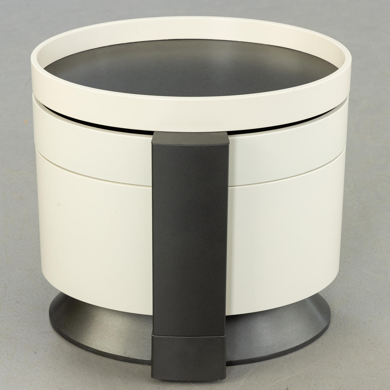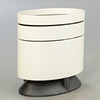 Mattlackerad träkonstruktion, 2 lådor, laminerade lådhyllor. Tung aluminiumfot.