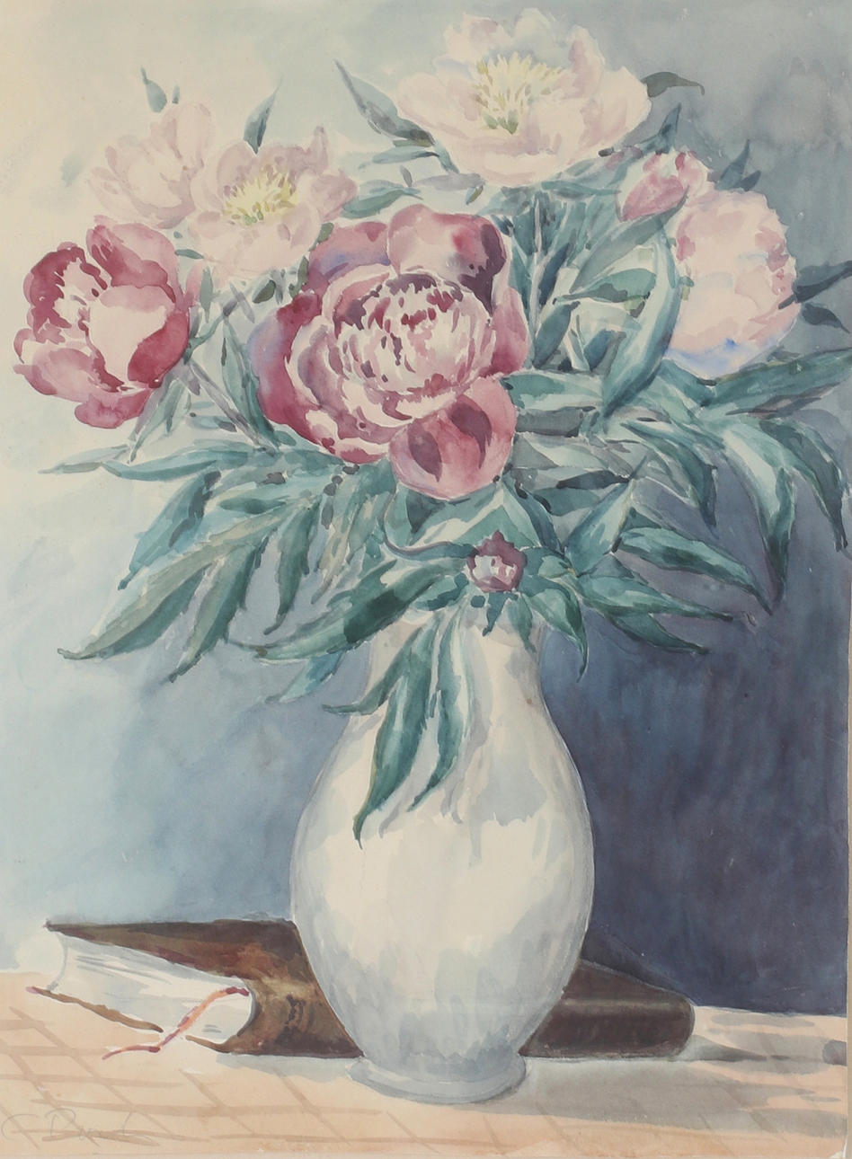 3237845. OIDENTIFIERAD KONSTNÄR. Blomsterstilleben, akvarell, signerad.