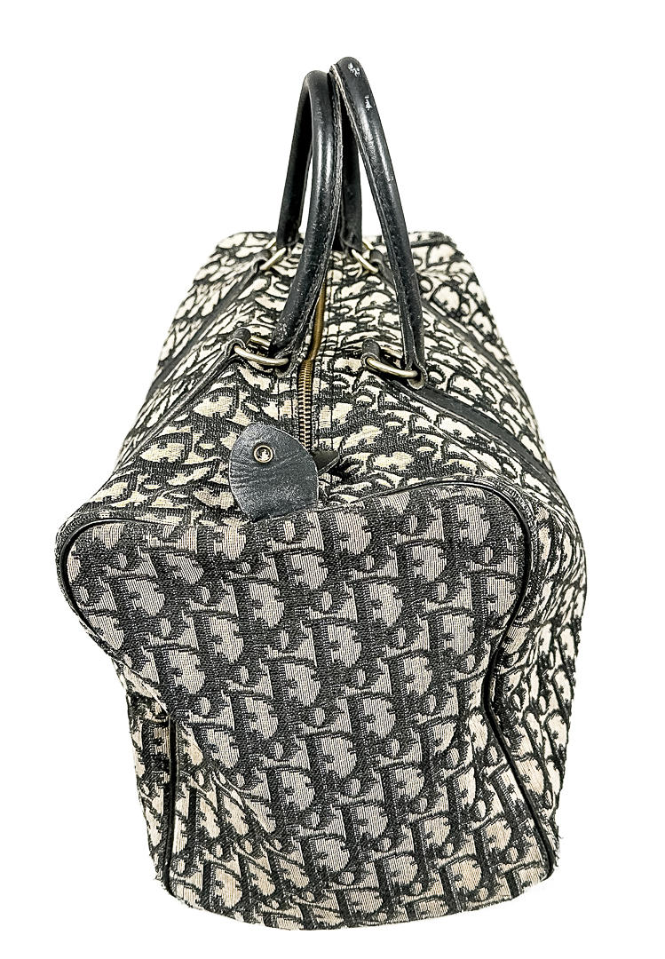 Handväska Trotter Boston bag i mörkbrunt monogrammönster på naturfärgad canvasbotten med skinndetaljer i mörkbrunt. Invändigt märkt Christian Dior bagages made in France, garanti scotchgard.