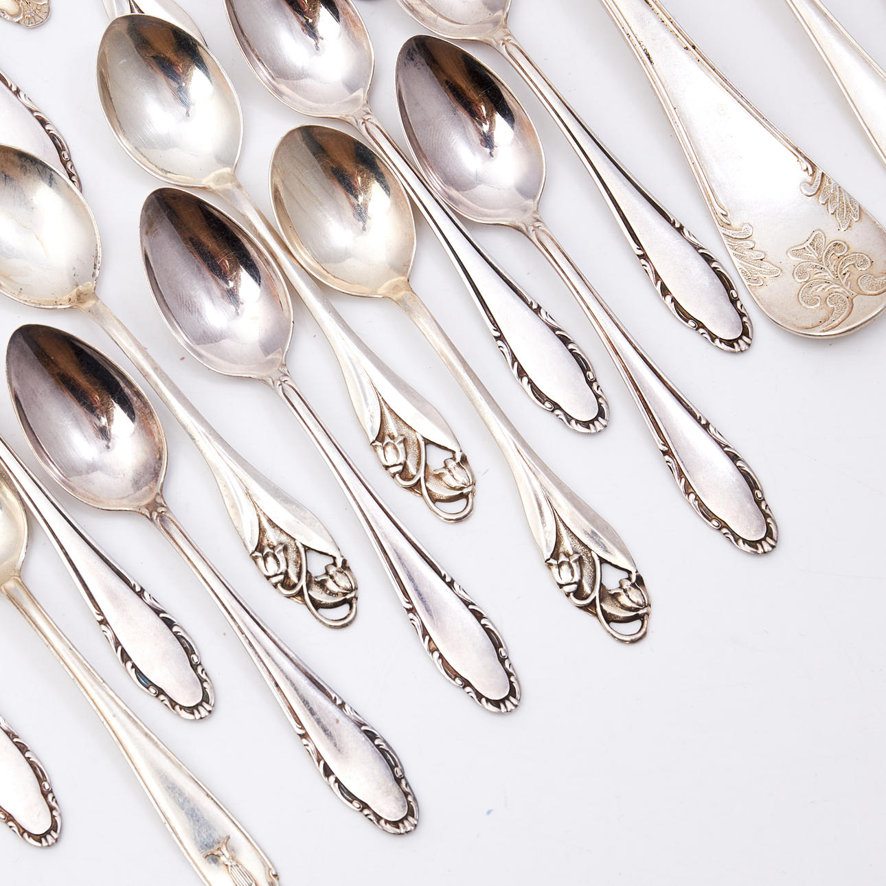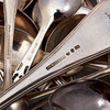De stora skedarna med bucklor, bruks och åldersrelaterat slitage.