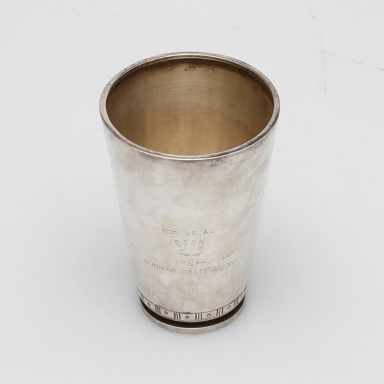 Graverad "För 25 år SAAB 19 11/12 64"samt namngravyr.