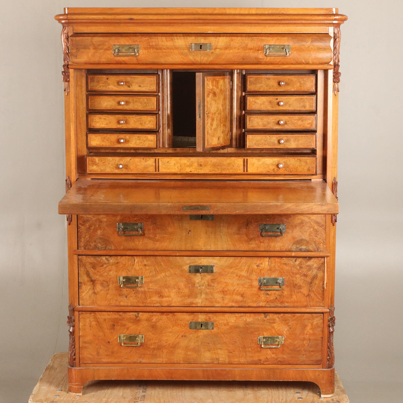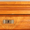 Ställvis fanérskador samt sprickor i trä, repor, nyckel sitter fast i låda ( går ej att få ut).
