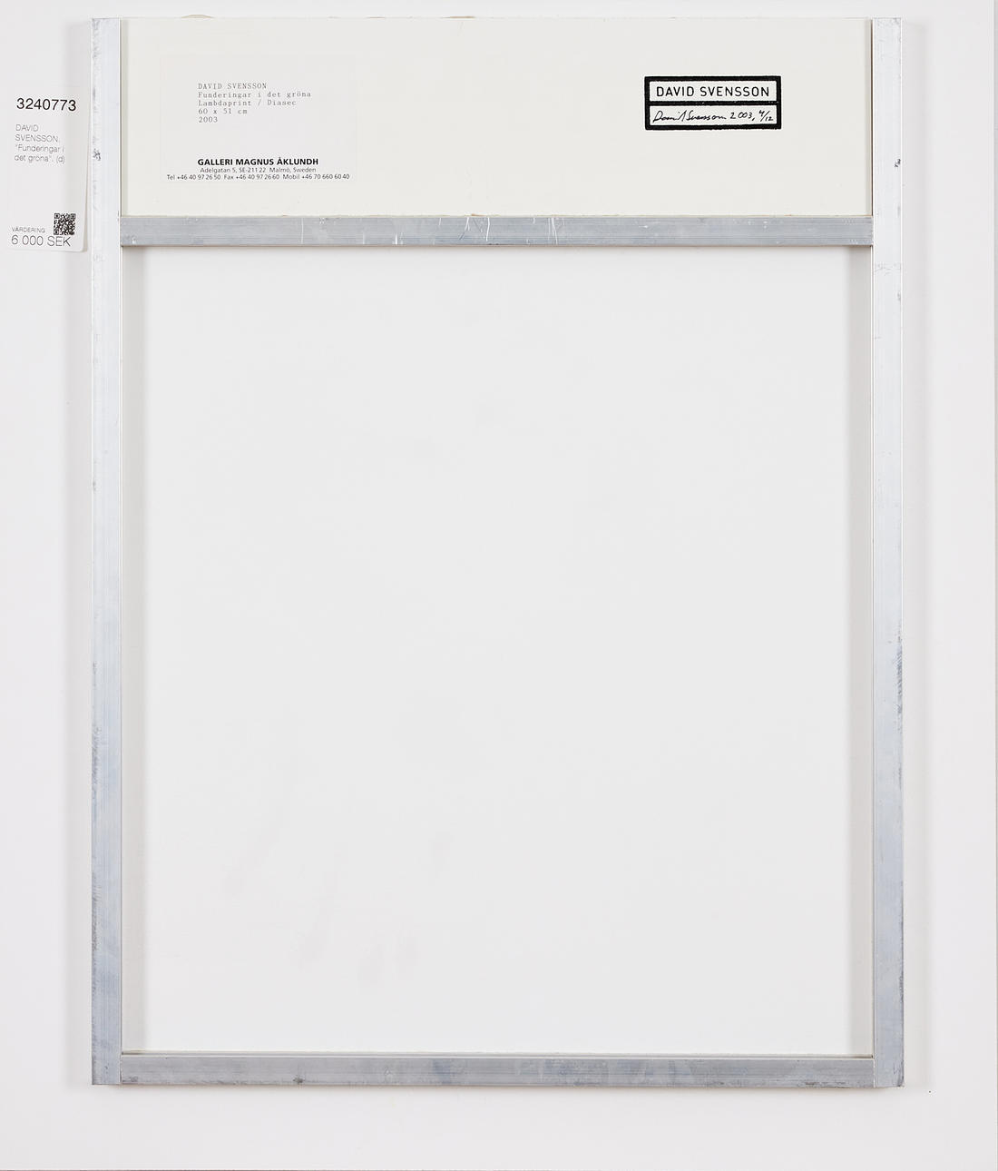 Lambdaprint/diasec, 60 x 51 cm. A tergo, signerad David Svensson, numrerad 4/12 och daterad 2003.