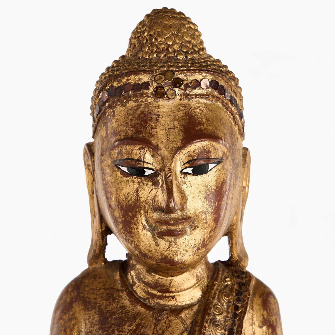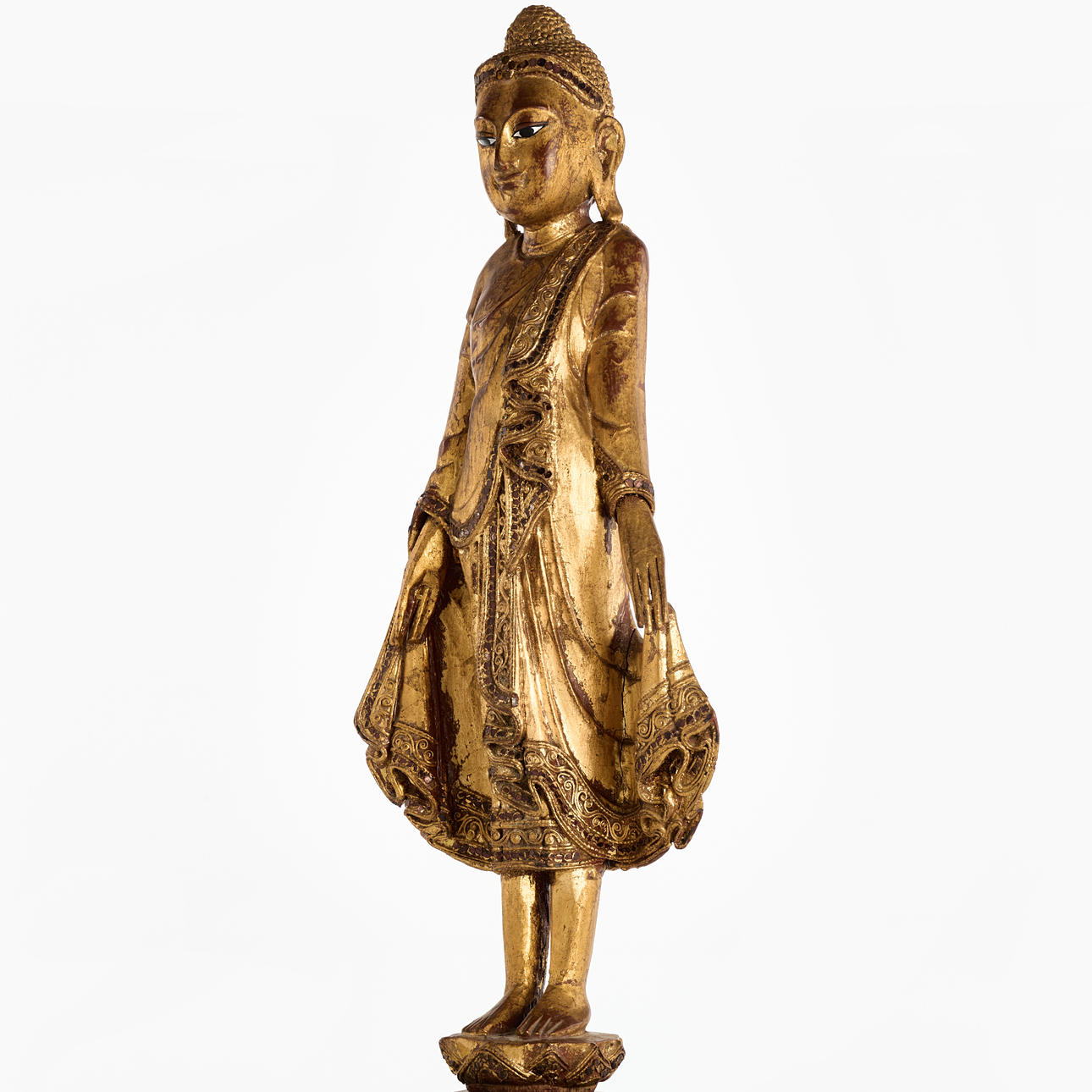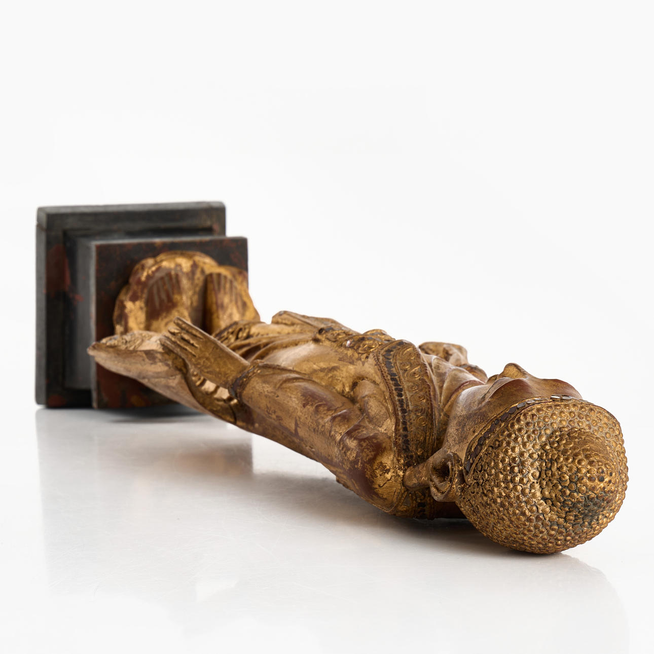 Skuren, förgylld och bemålad. Höjd exkl. sockel 56, totalt 66cm