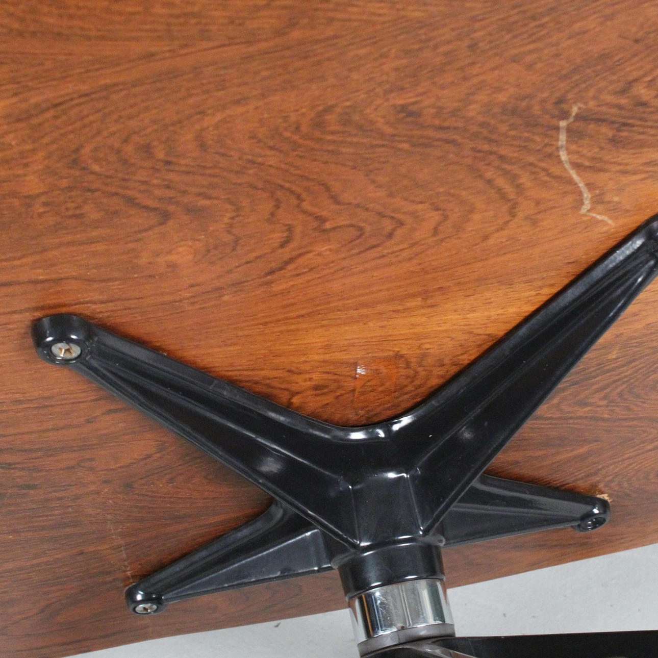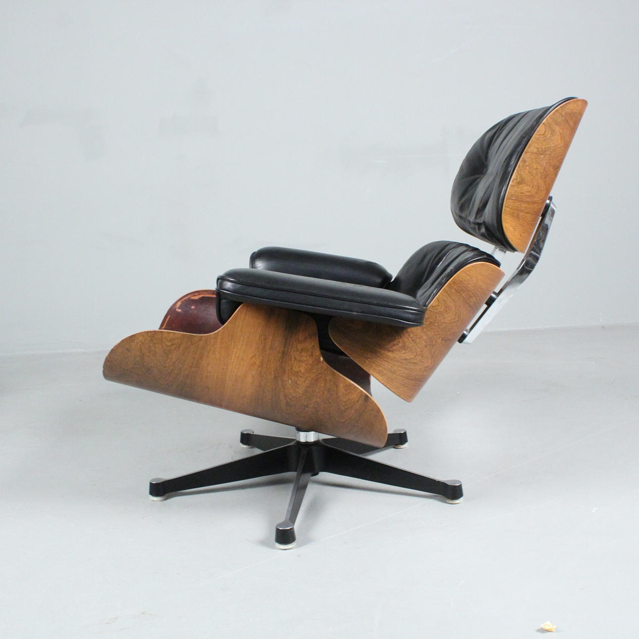 CHARLES & RAY EAMES, för Herman Miller, ”Solstol”, Vitra. Roterbar aluminiumbas med plywoodskal. Avtagbar svart läderklädsel.