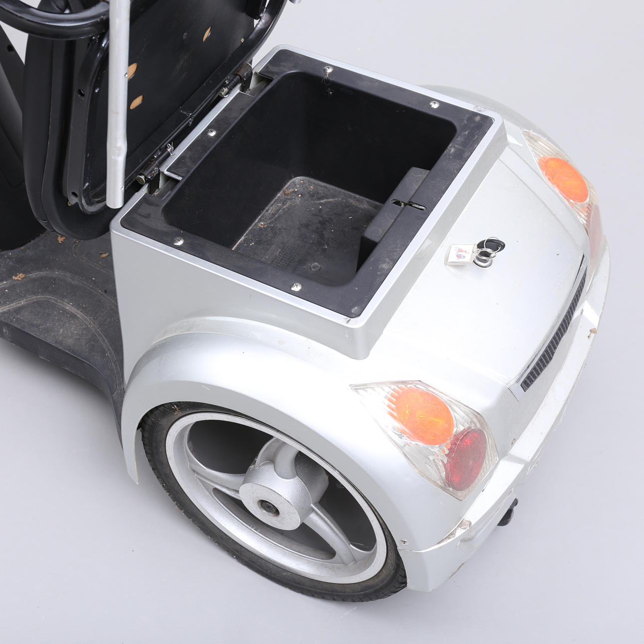 Längd ca 150, bredd ca 60 cm. Laddare samt 1 nyckel medföljer.