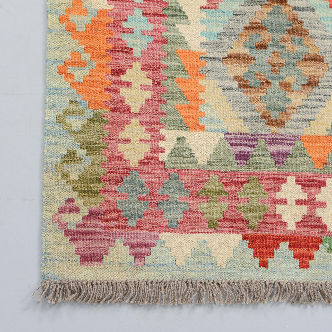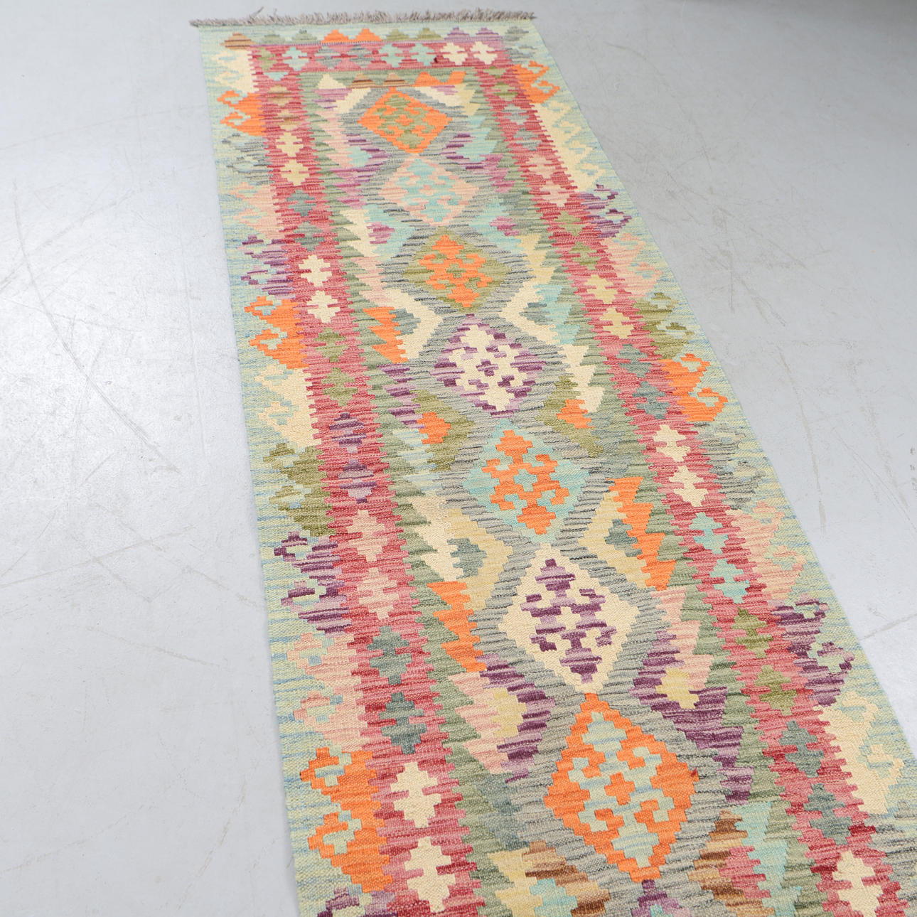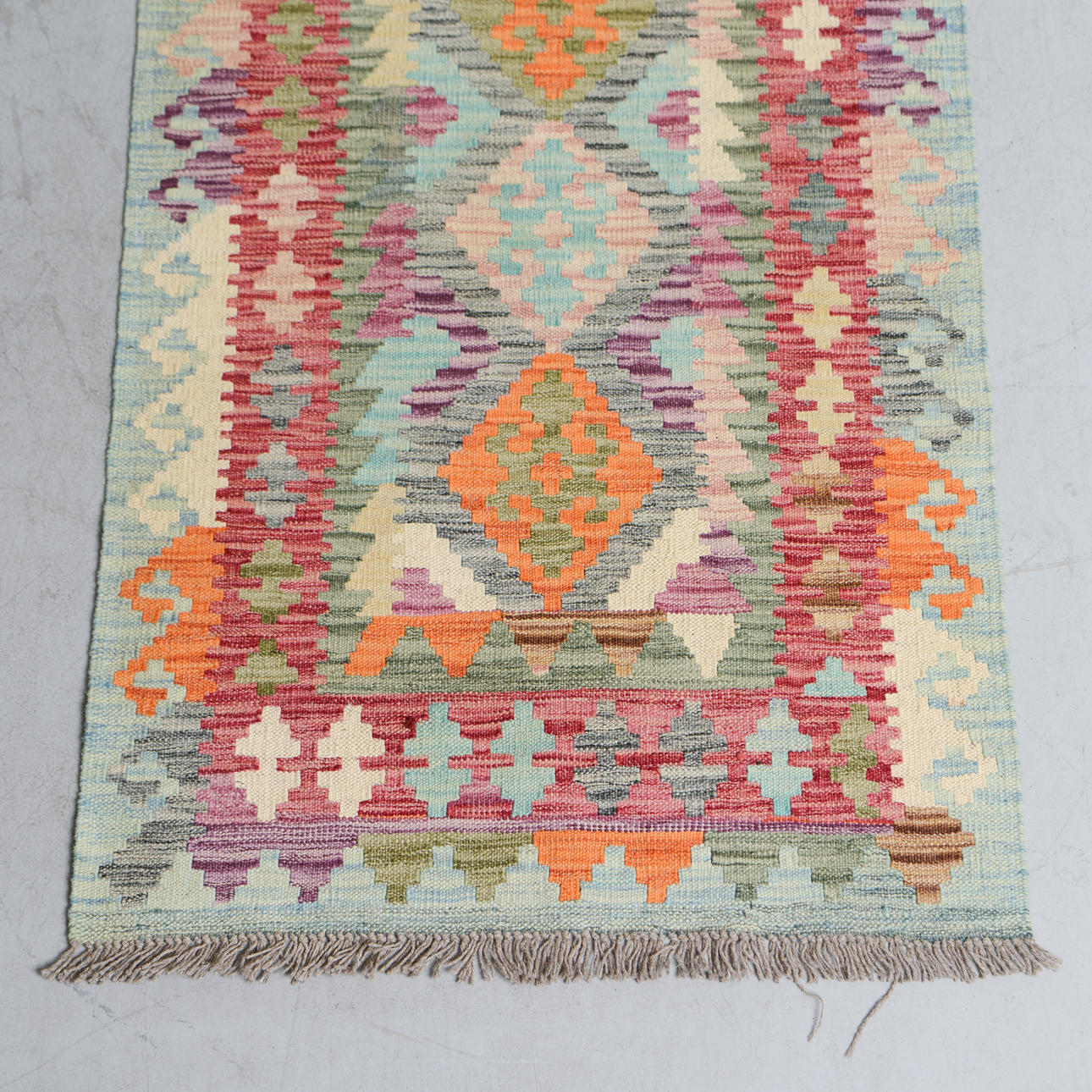 Kelim är en typ av orientalisk matta som kännetecknas av dess slätvävda struktur och geometriska mönster. Ordet "Kelim" härstammar från persiskans "gīlim," vilket betyder "grovvävd filt." Dessa mattor är tillverkade genom en speciell vävteknik där inslagstrådarna vänder när färgen ändras, vilket skapar det karakteristiska diagonala mönstret. Denna vävteknik ger mattorna en unik och vändbar kvalitet.