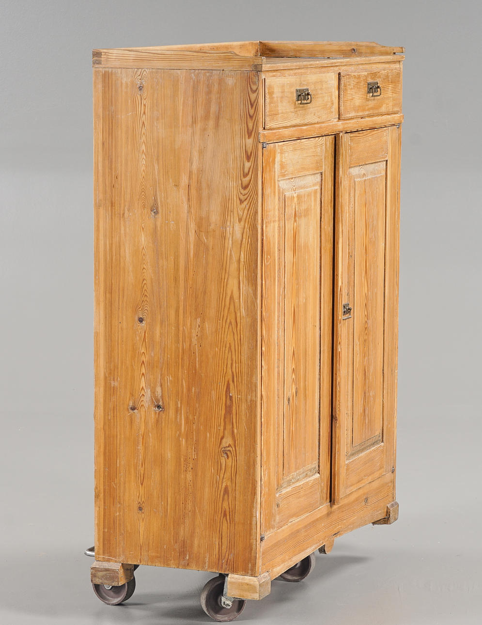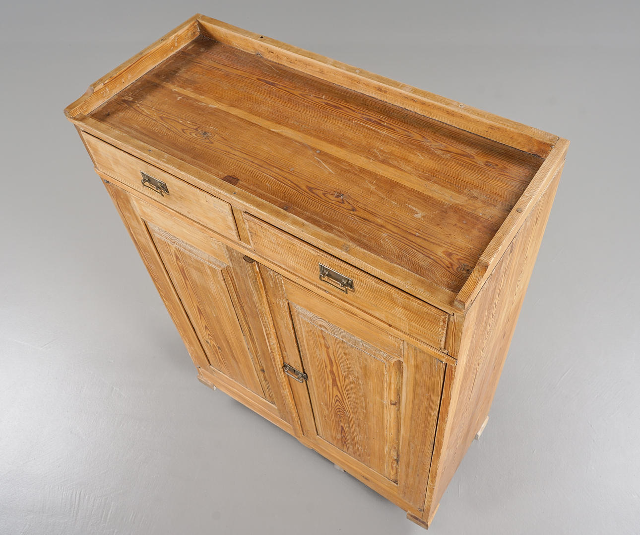 2 lådor, skivan med bakkant, senare beslag i mässing.