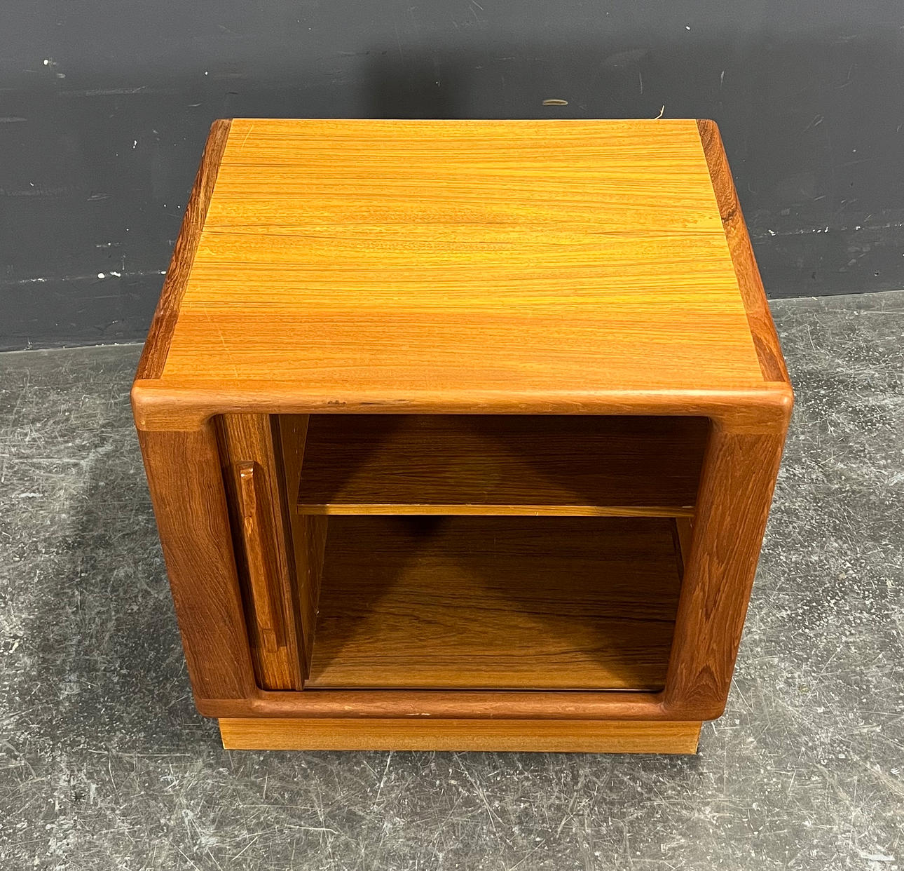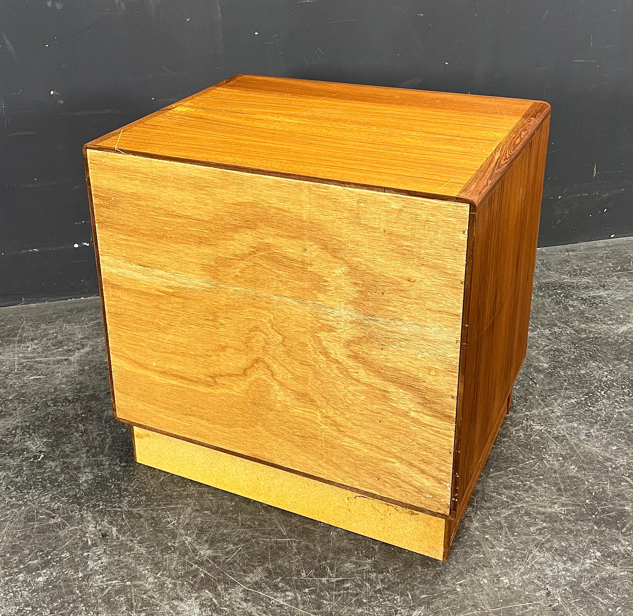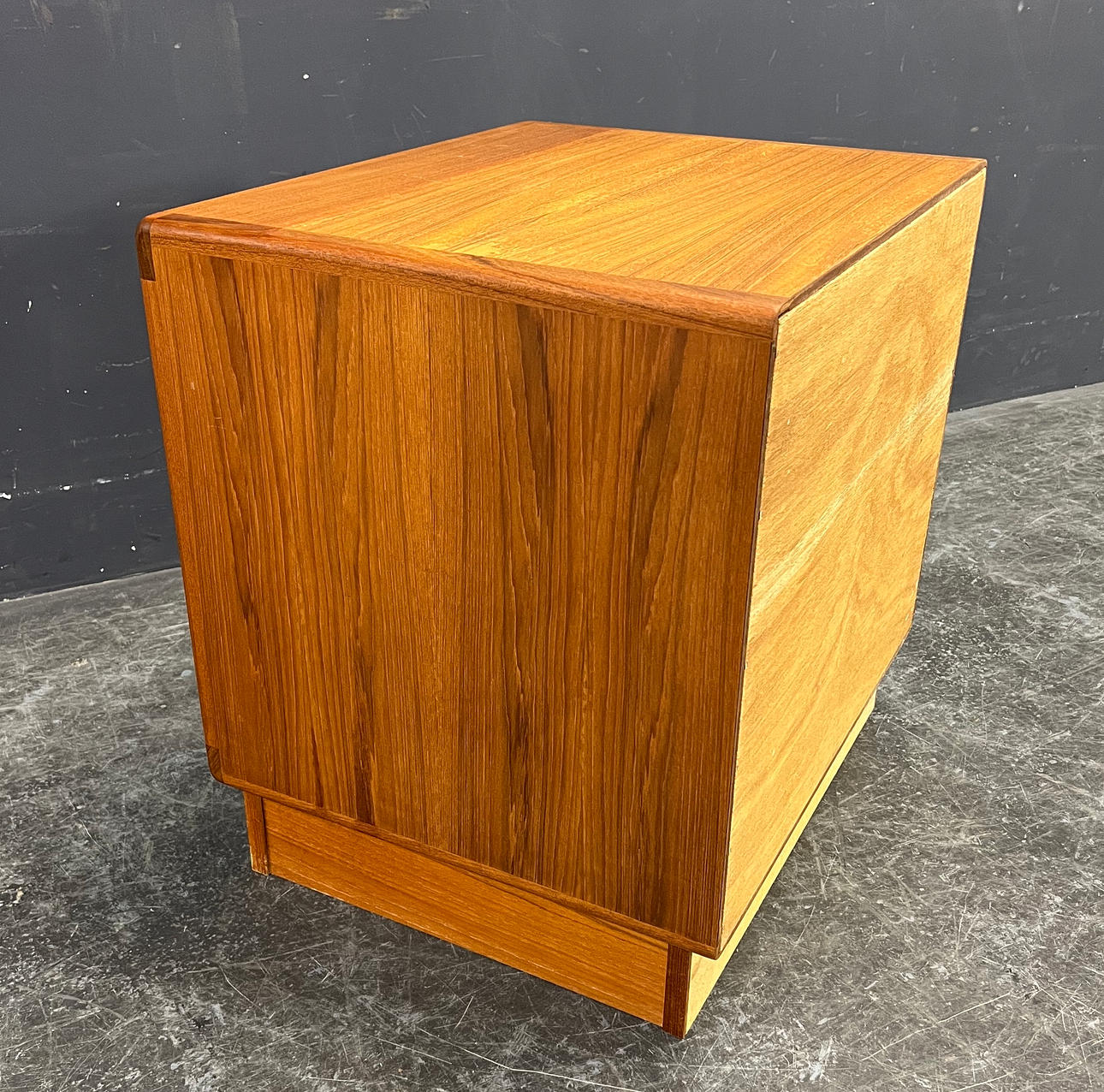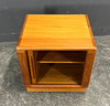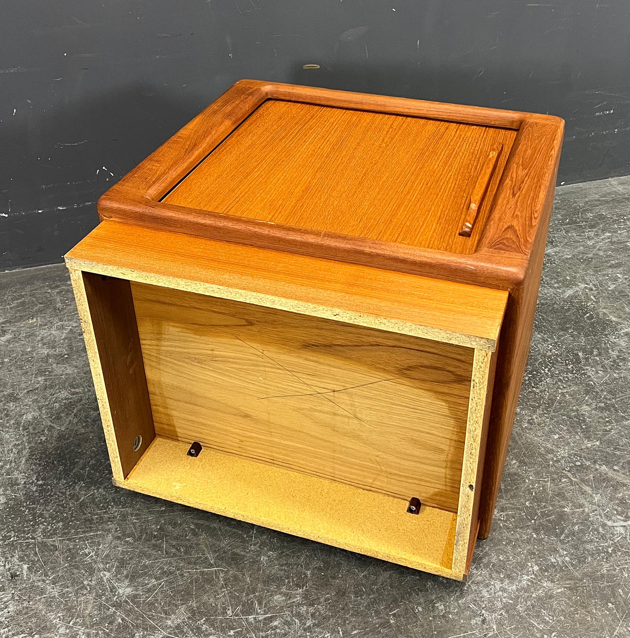 Teakträ med fönsterlucka.