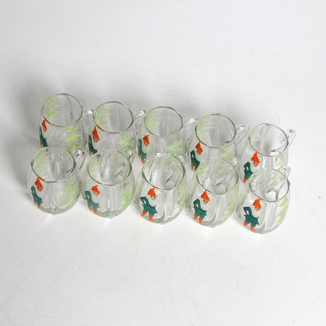 GLÖGGKOPPAR, glas, 10 st. 1900-talelets första hälft.