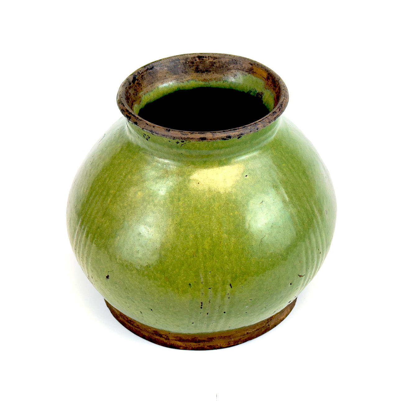 Stor grönglaserad lerkruka, möjligen koreansk, H. 21cm.