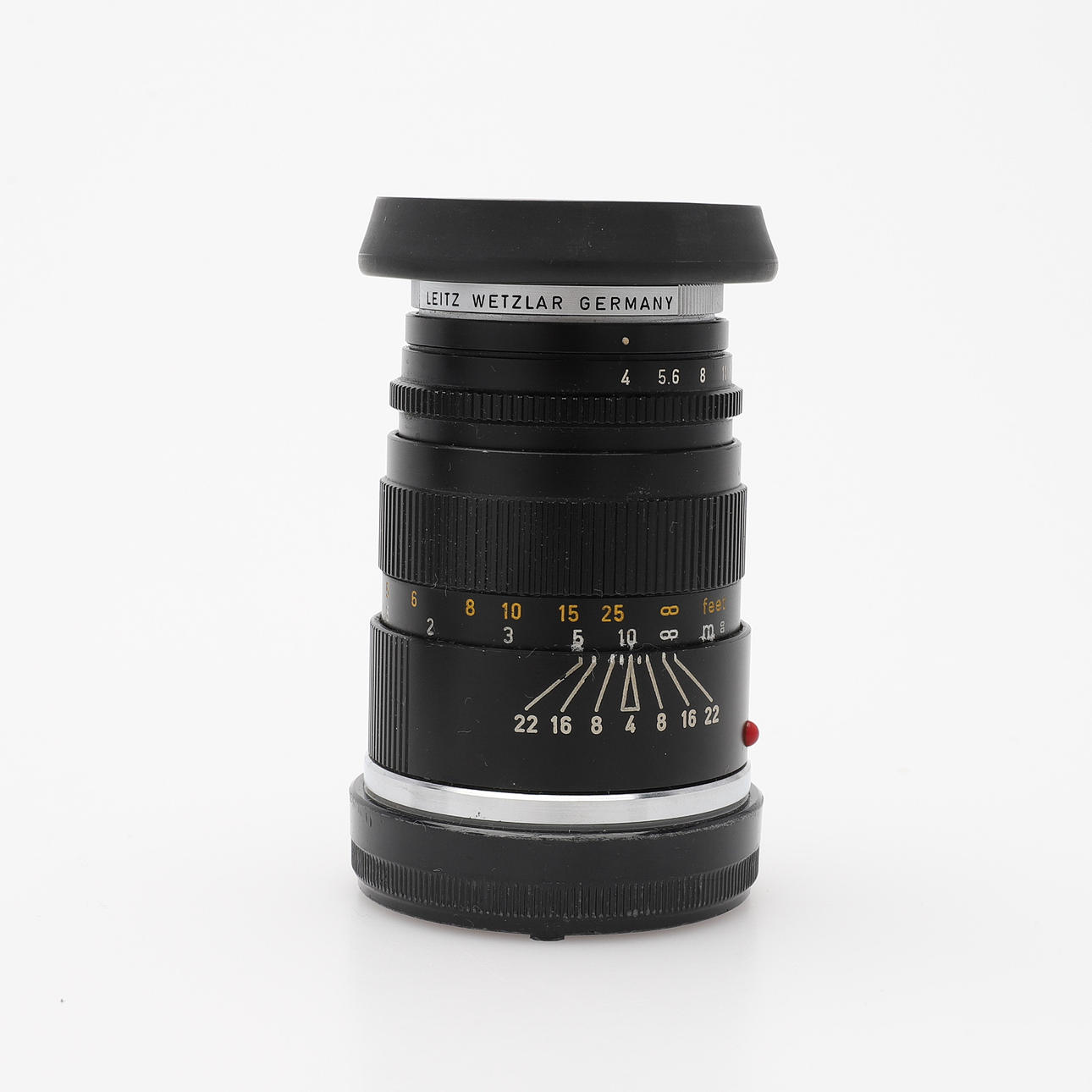 Kamerahus M5, nr 1299048, 1972 samt 3 objektiv: Leitz Canada 2483289 Summicron 1:2/35, Leitz Wetzlar 2571503 Elmar-C 1:4/90 och Ernst Leitz Gmbh Wetzlar Elmar f=5 cm 1:2,8, nr 1635162 samt därtill bruksanvisning och väska.