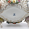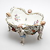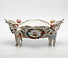 Uppburen av putti, polykroma blommor med mera. Längd 41, bredd 29, höjd 15 cm.