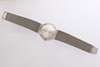 Stålfodral med 30 mm diameter. Mesh armband i stål med klassisk stängning på 17,5 cm i längd. Manuell lindningsrörelse. 66 gr.