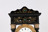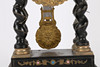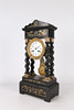 den vita emaljerade urtavlan med romerska siffror och yttre minutspår, det eboniserade portikfodralet med sköldpaddsskal, mässing och pärlemorinlägg, 22 cm bred, 46 cm hög, 13 cm djup.