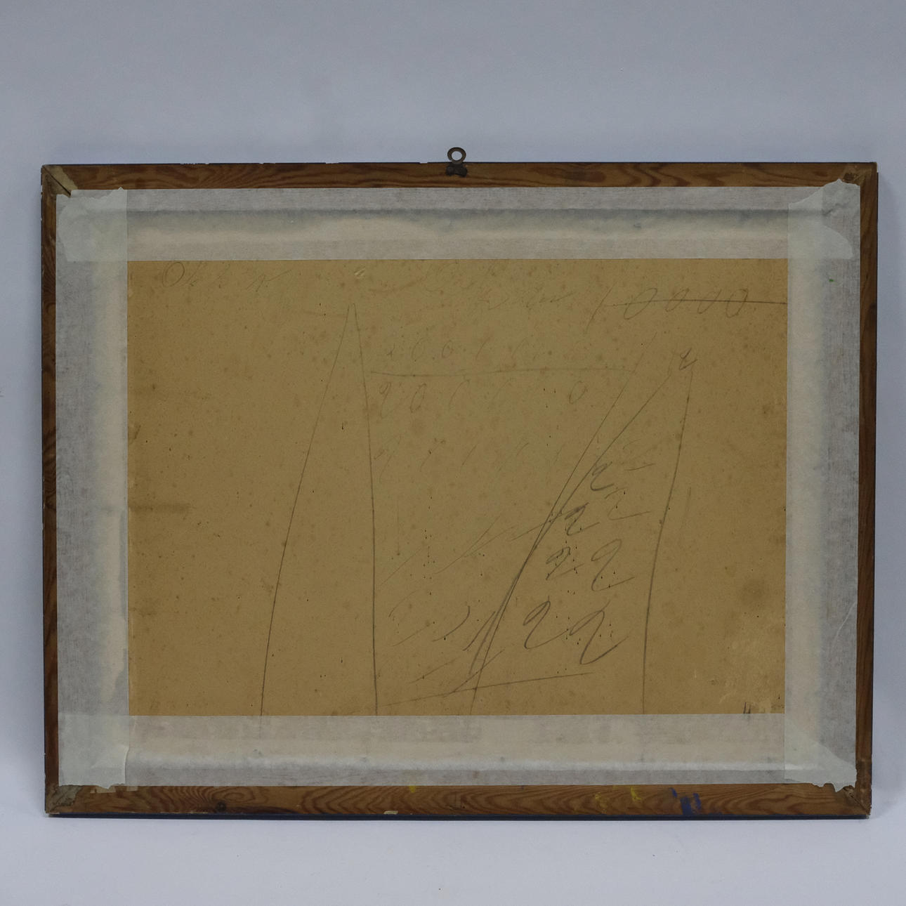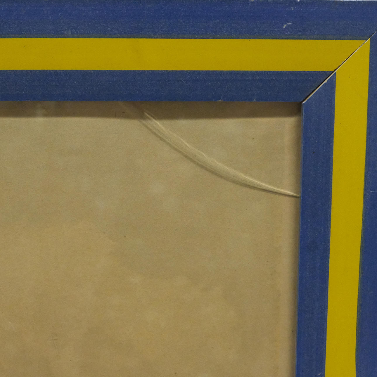 Sprucket glas. Bladet med gulnad. Visst ramslitage.