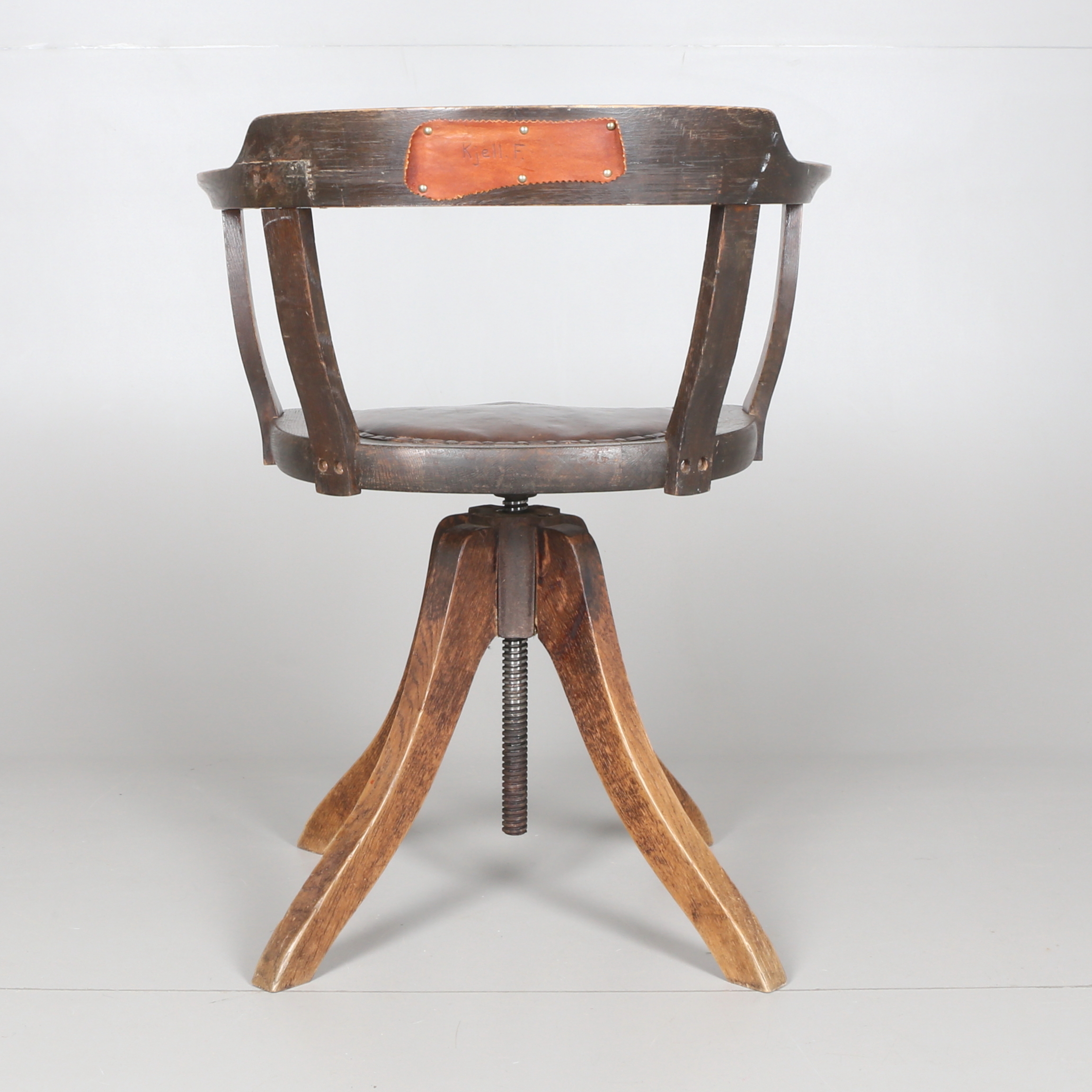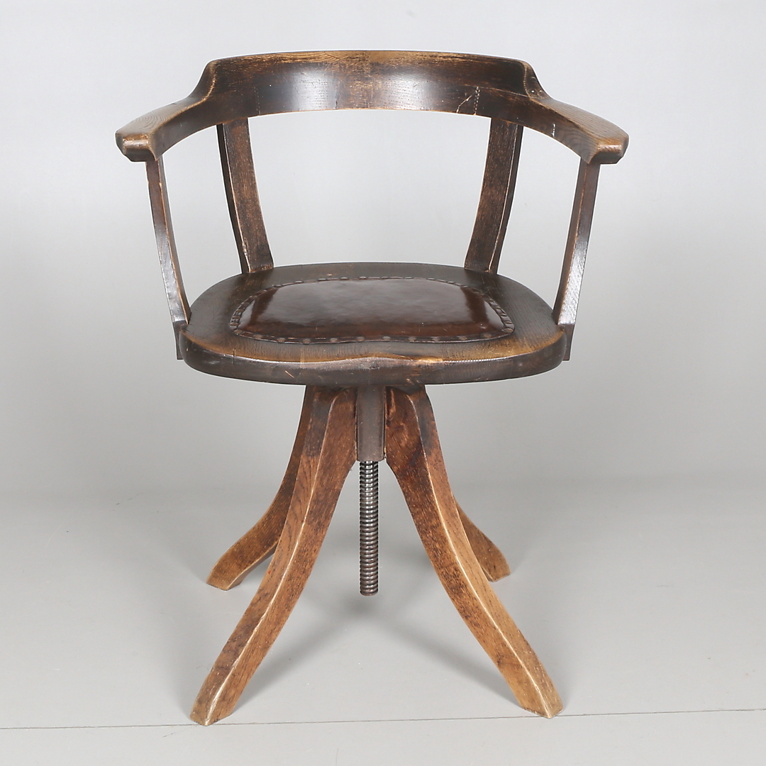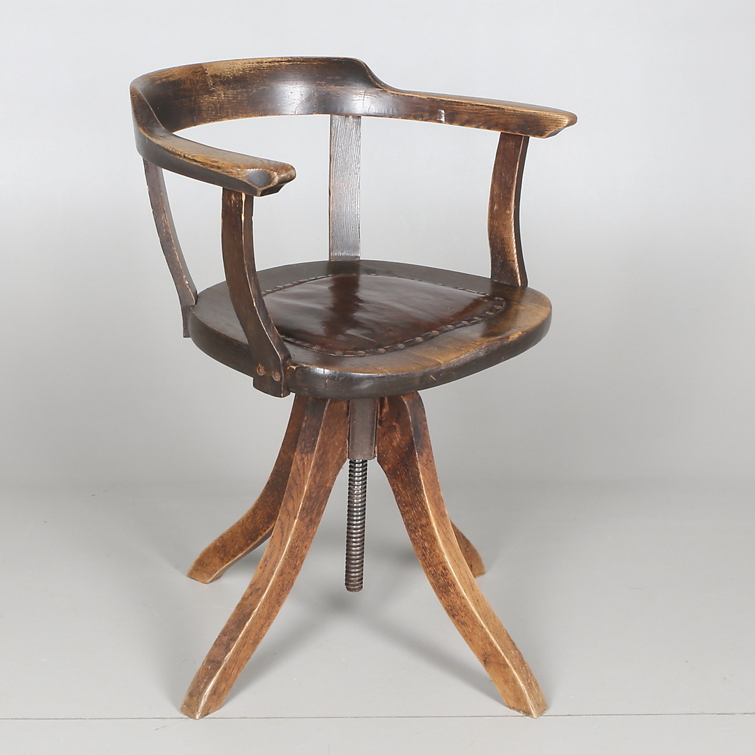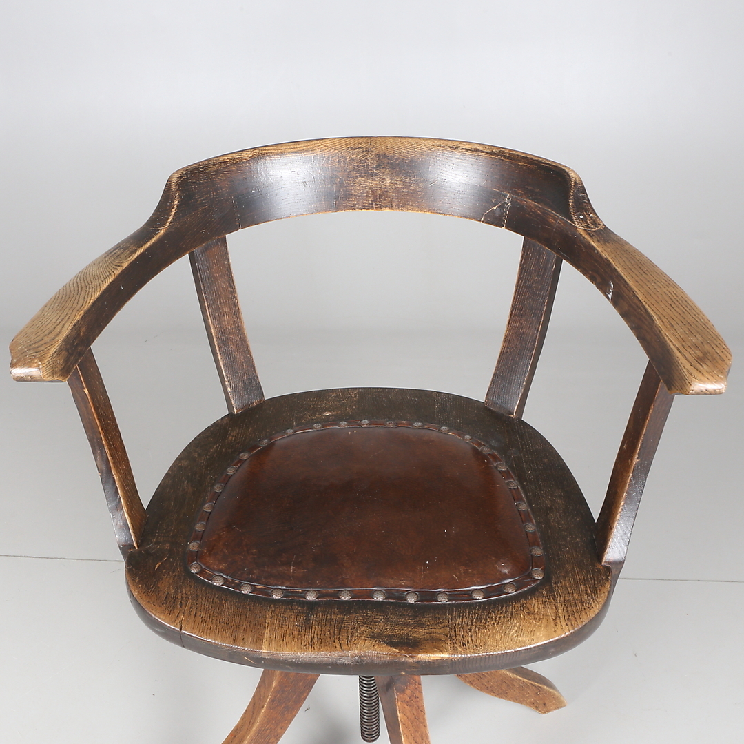 325809. KONTORSSTOL, trä/läder, ca år 1900.