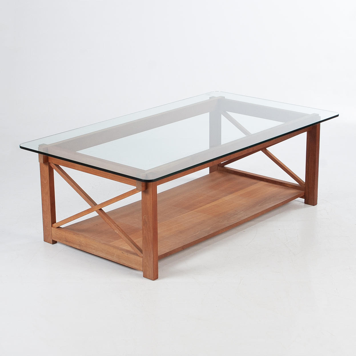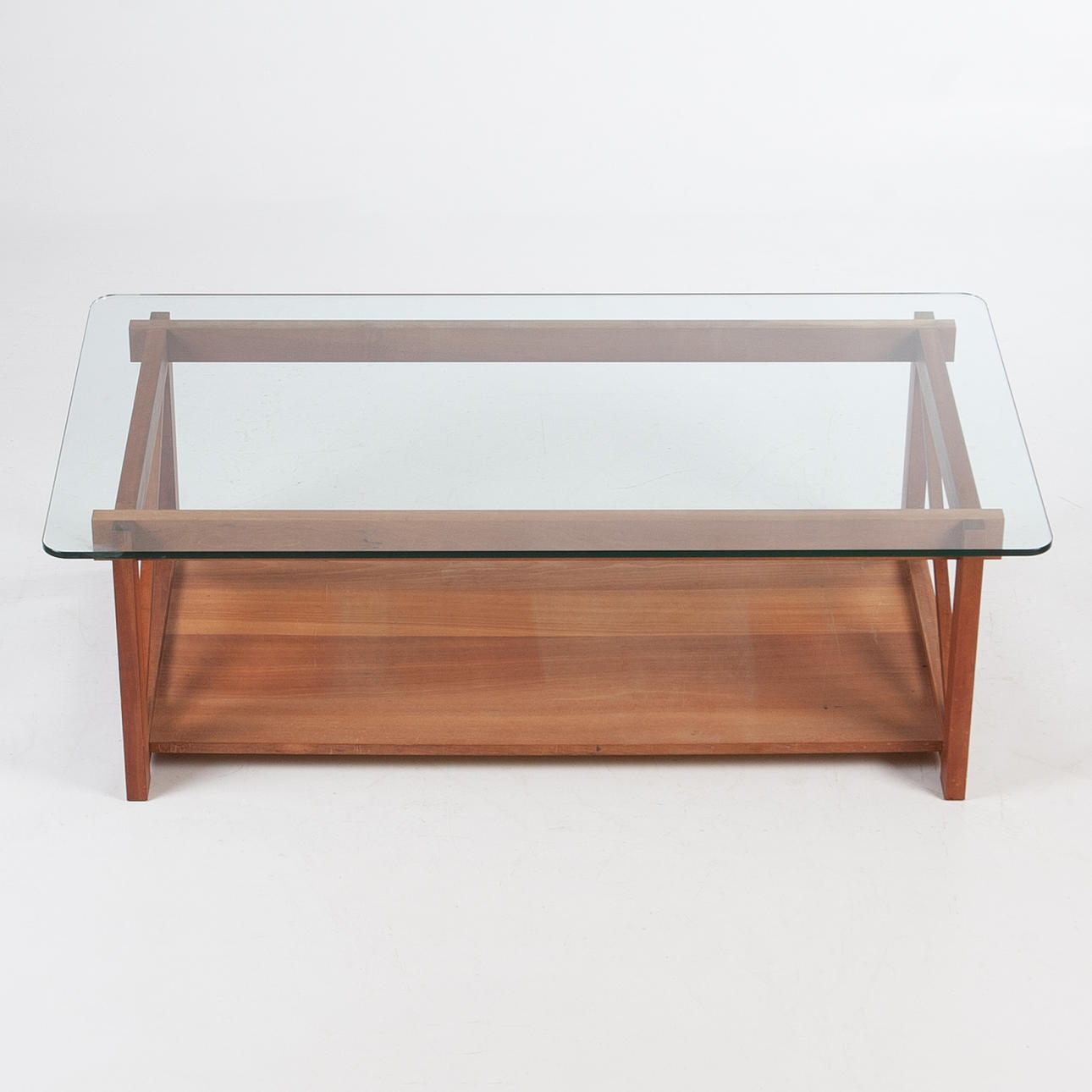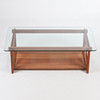 Benställning i körsbär med lös skiva av svagt grått glas.