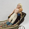 Schultz docka Tyskland, längd 34cm. Armand Marseille docka Tyskland, längd 50cm. Dockvagn, höjd 63cm, längd 60cm.