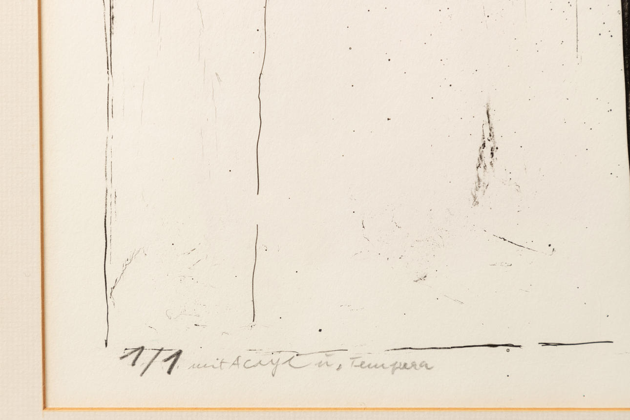 Oskar KOLLER (1925-2004), blomvas, färgad litografi, troligen unik, 1986, signerad, daterad, numrerad och inskriven 'med akryl och tempera', exemplar 1/1, ca. 78 x 57 cm, inramad bakom passepartout och glas, med ram ca. 112 x 89 cm.