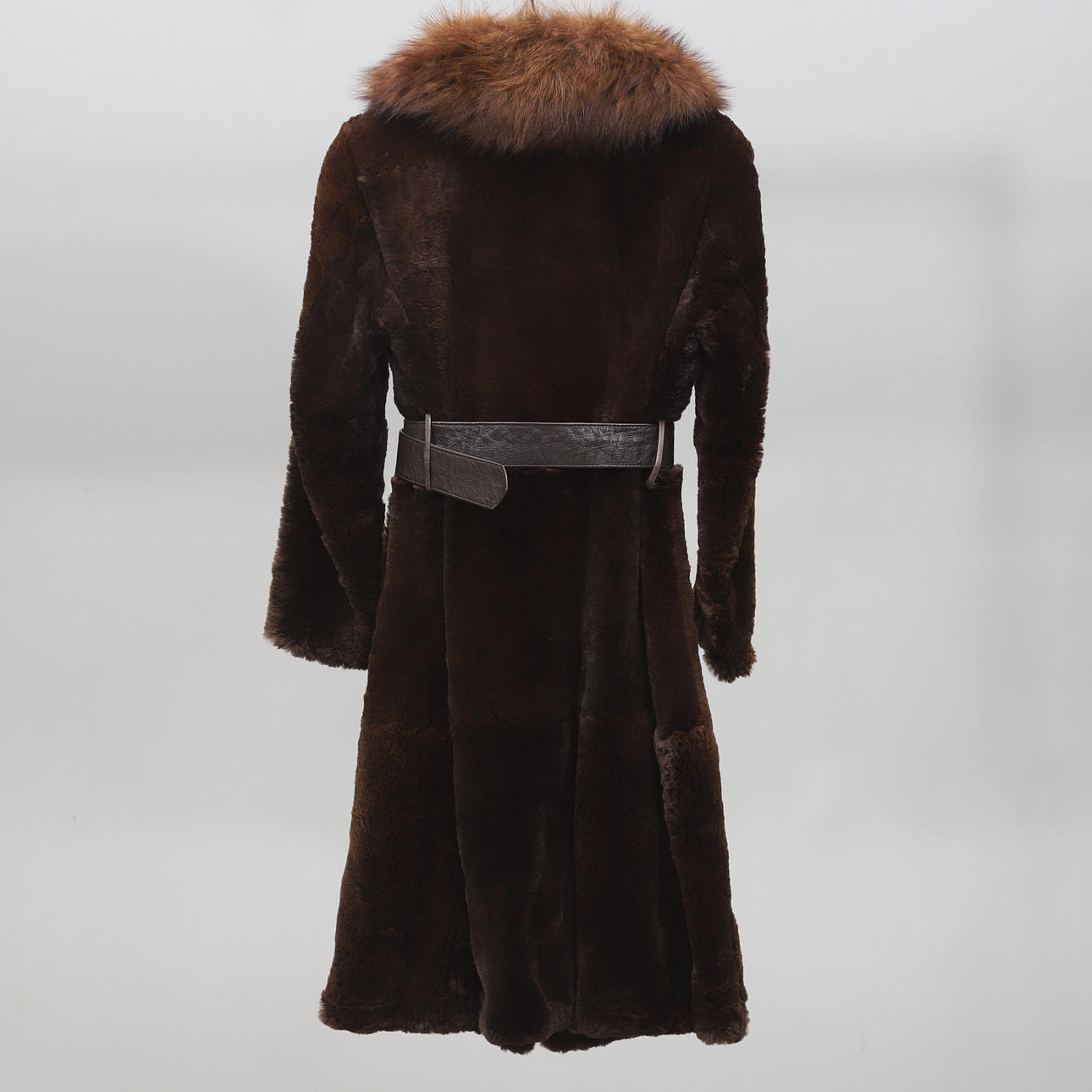 Rakad mink med krage i räv. Mått armhåla till armhåla ca 45, höjd 108 cm.