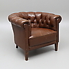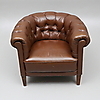 FÅTÖLJ, skinn, Chesterfield, 1900-tal.