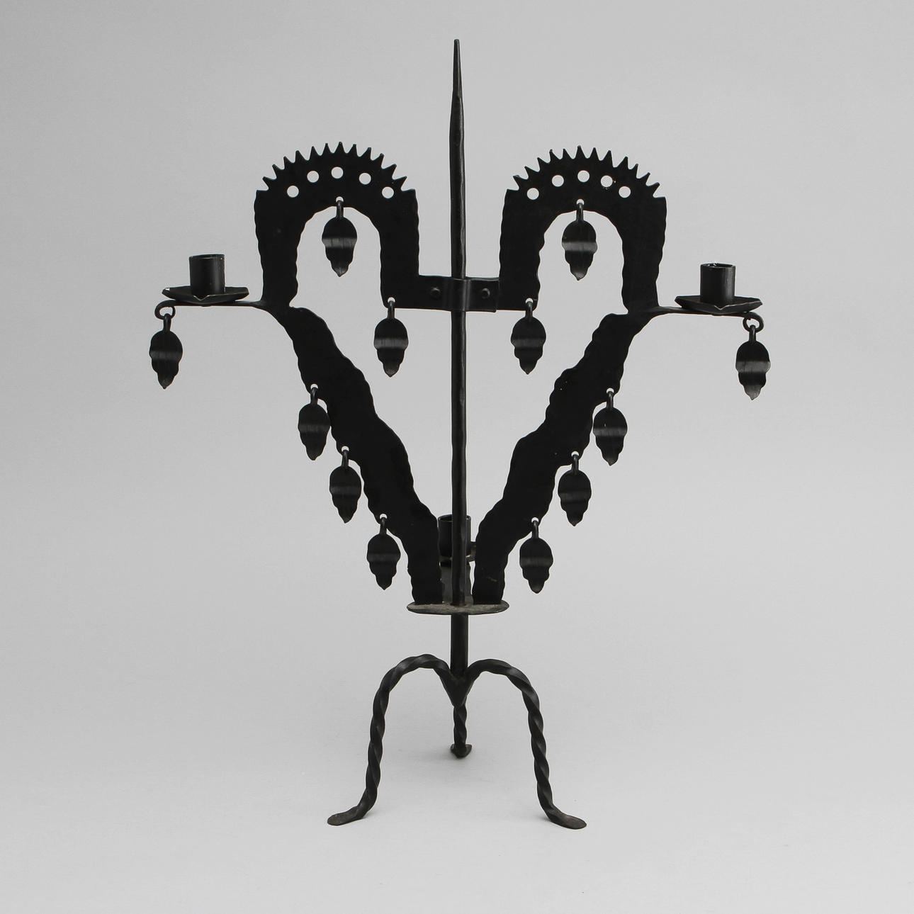 I form av ett hjärta med dekor av bladverk. Två ljusarmar. Höjd 55 cm.