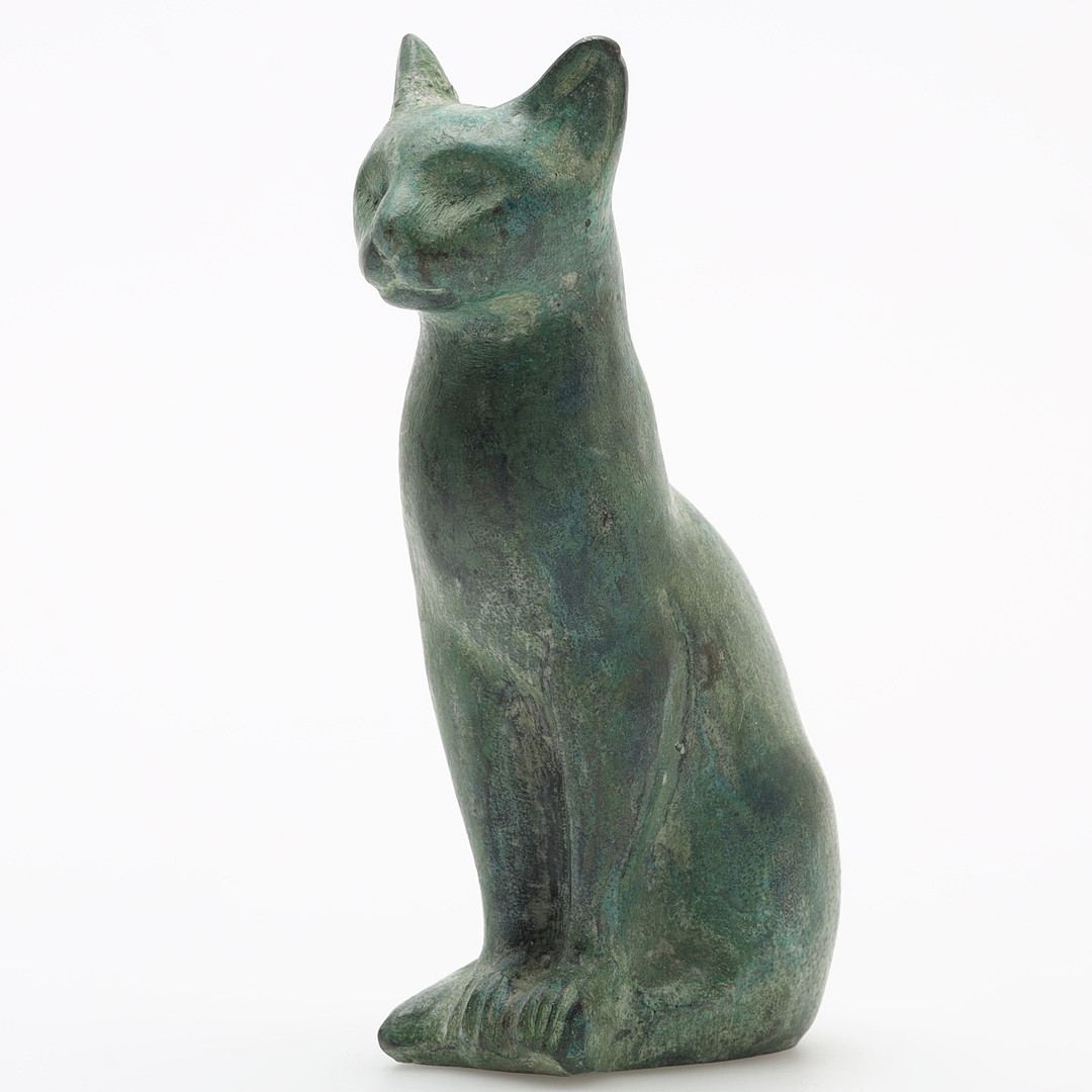 3268147. FIGURIN, grön marmor, katt.
