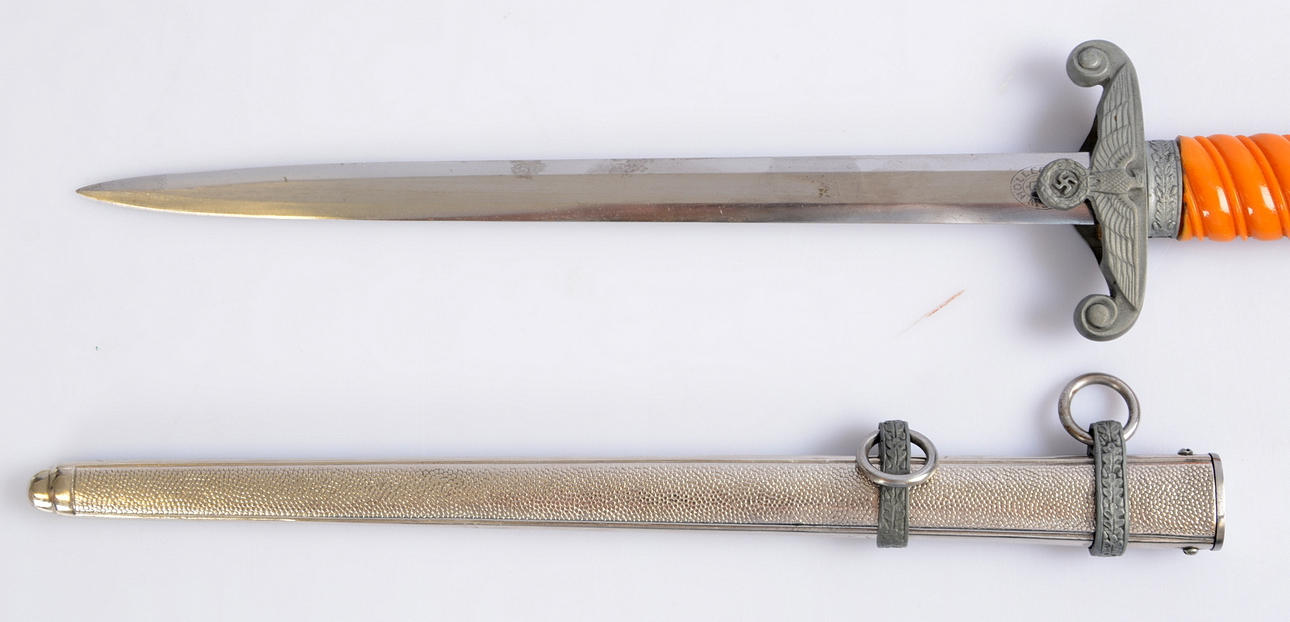 Total längd 39,5 cm. Klingan märkt F.W Höller. Originaldelar.möjligen ihopplockad med delar ej tillhörande.