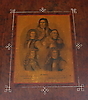 Vridbar och fällbar skiva. Drickamålad samt med dekorationsmålning och kungaporträtt, Carl XI. Höjd 74 cm, diameter 81 cm.