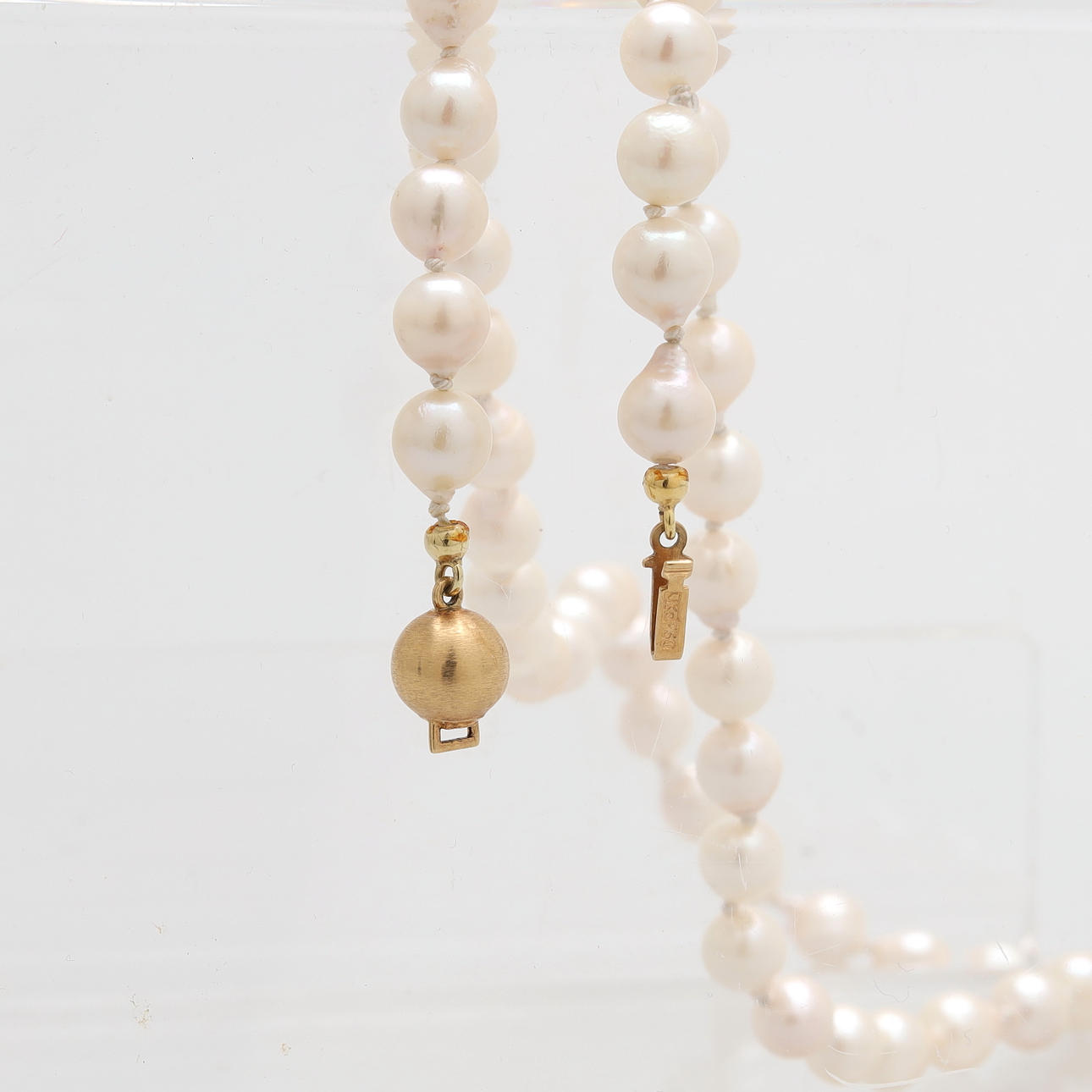 3270064. PÄRLHALSBAND med lås, guld 18K.