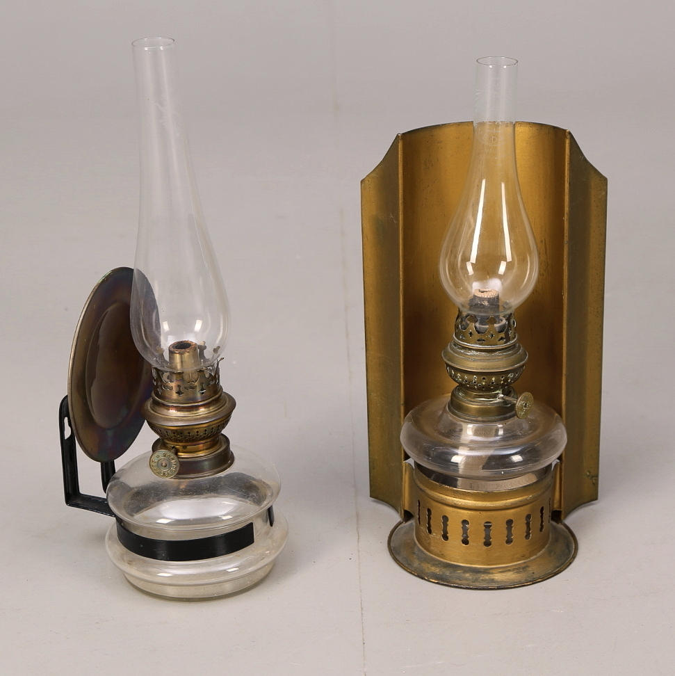 Väggfotogenlampor, höjd 19-27 cm exklusive brännarglas.