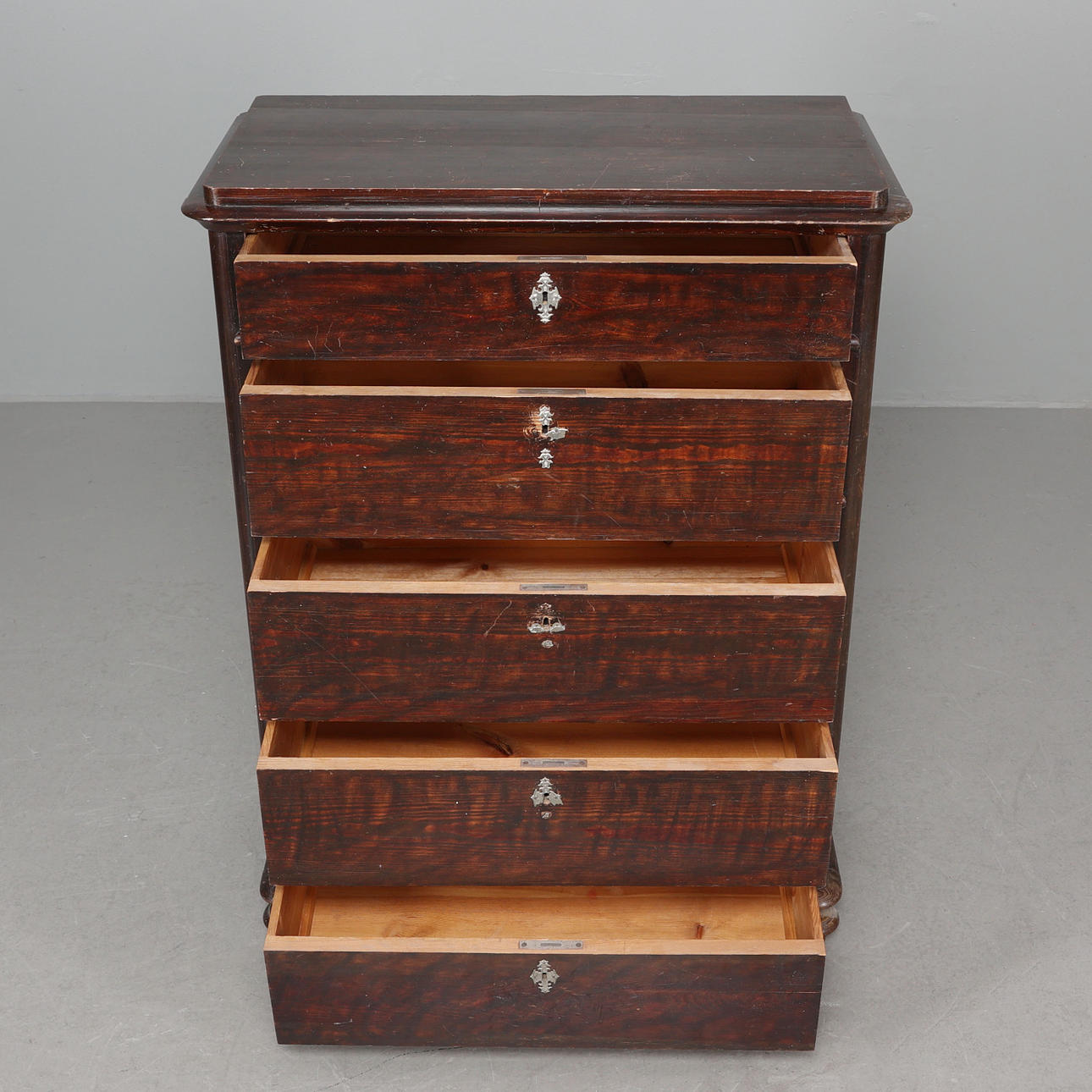 3270985. BYRÅ i mörkbetsad furu, ca. 1900.