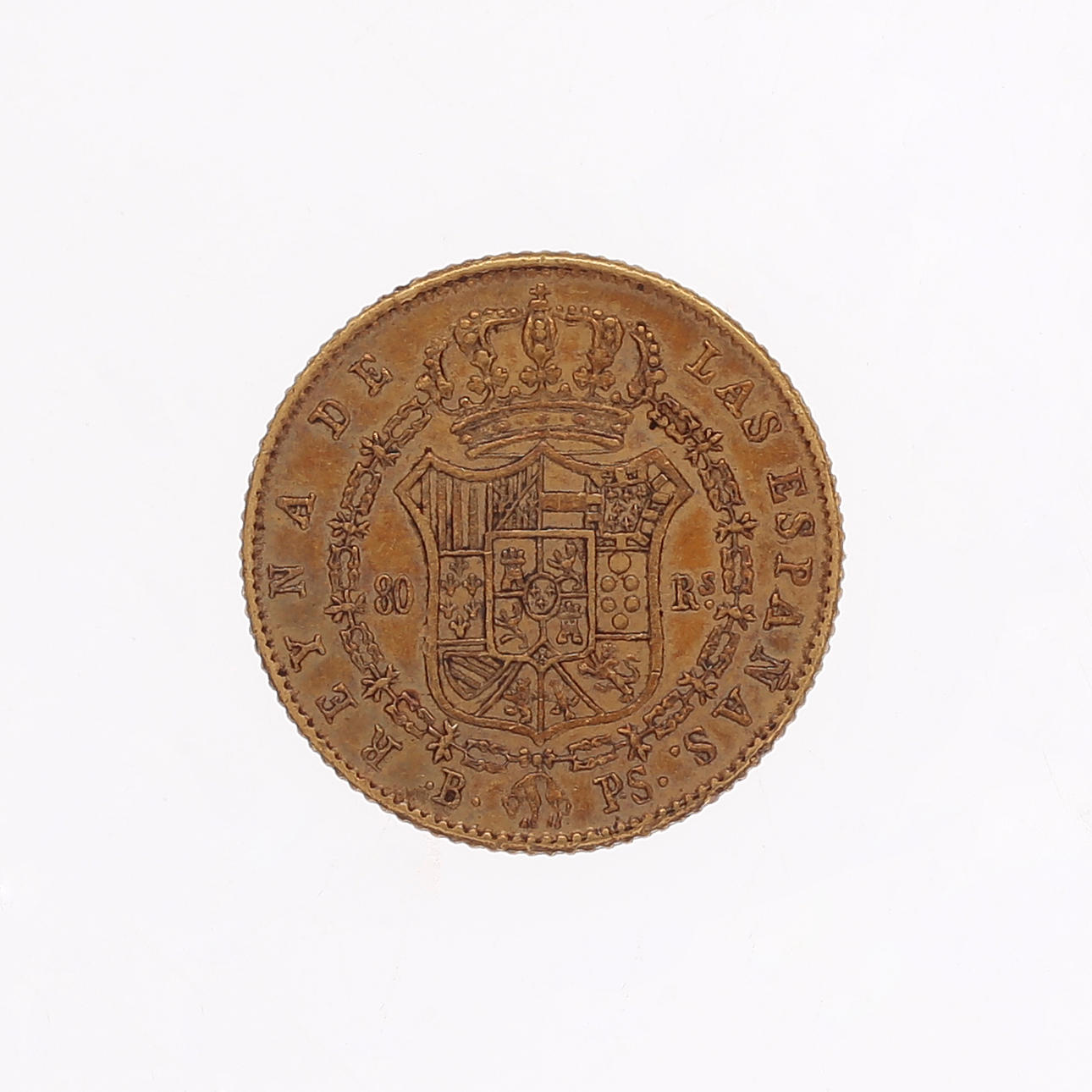 80 reais, Isabel II, 1847, Barcelona, PS. 6,8 gr.