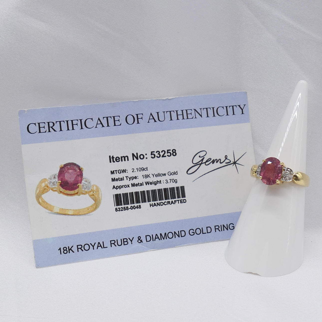 Ring, 18k gult guld med Madagaskars kungliga rubin och diamanter, med äkthetscertifikat.