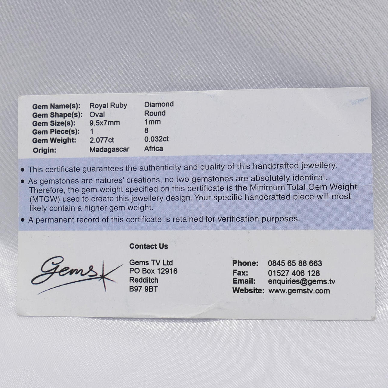 Den centrala spännhylsan är en ovalskuren, naturligt bristfällig röd rubinsten på 2,07 ct.