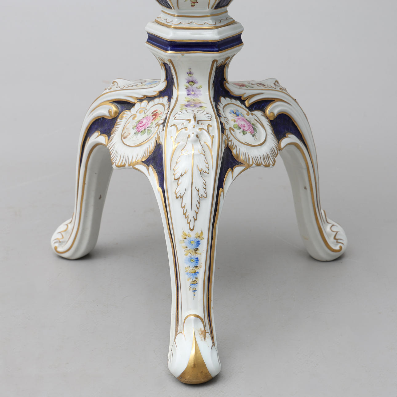 Porslin med blomstermåleri i färger, stämplat "PMP", 1900-talets sista fjärdedel, höjd 60, diameter 46 cm.