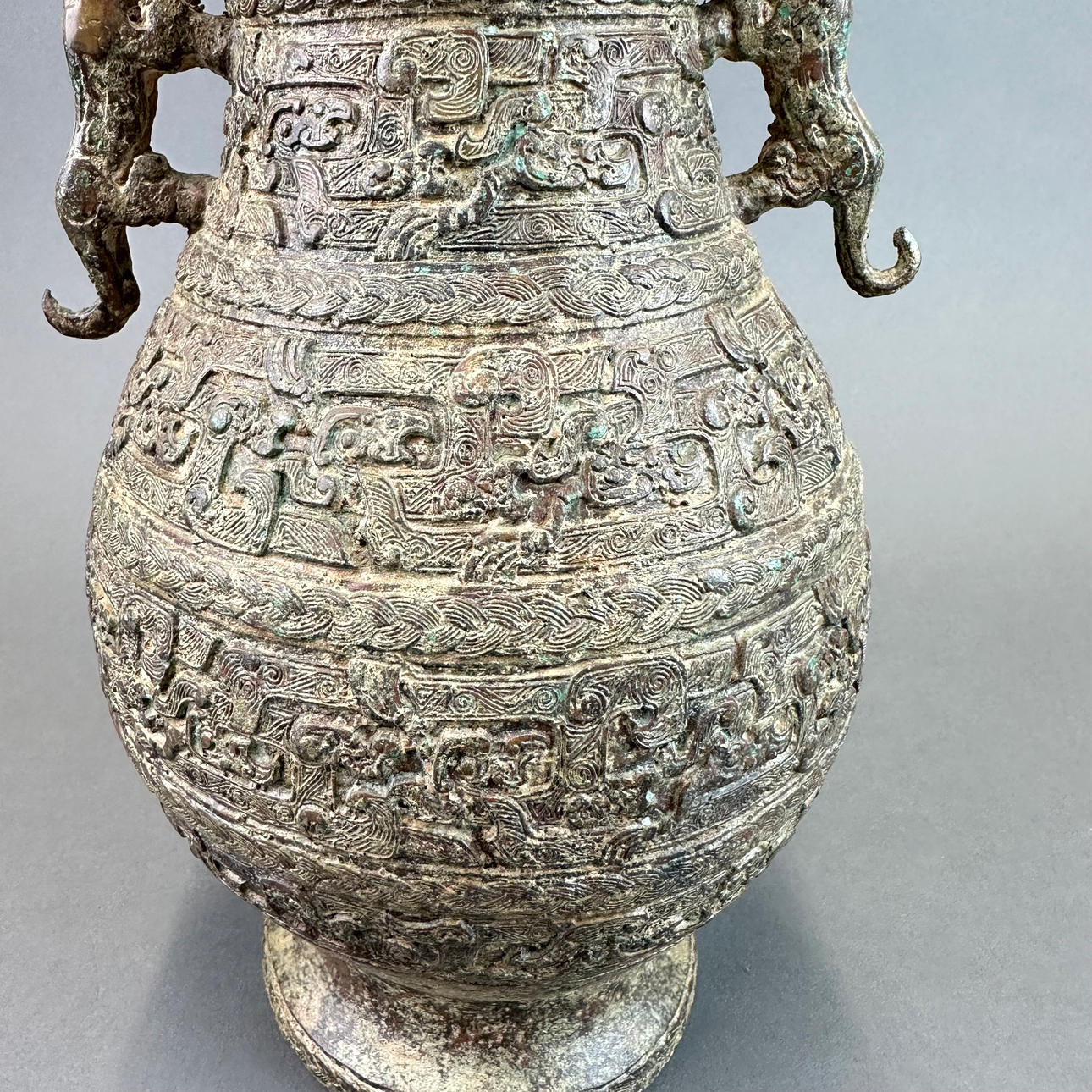 KÄRL, brons med drakhandtag, Kina, arkaisk form, H.27cm.