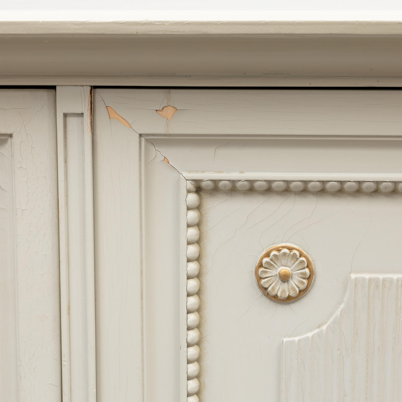 Färg med krackeleringar, färgbortfall.
