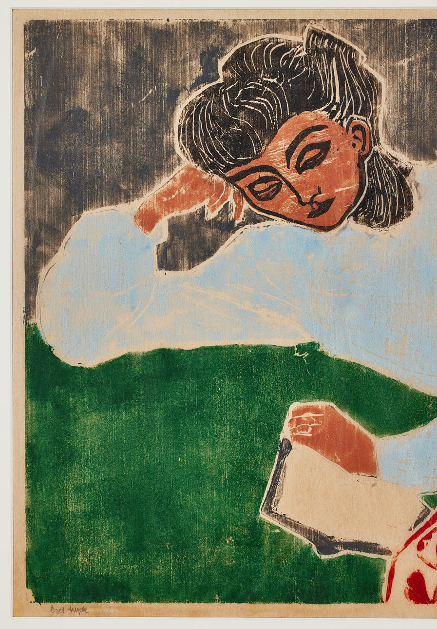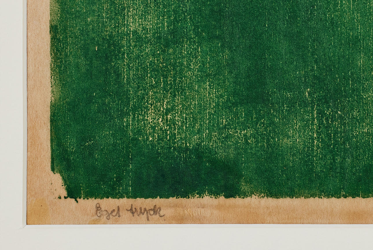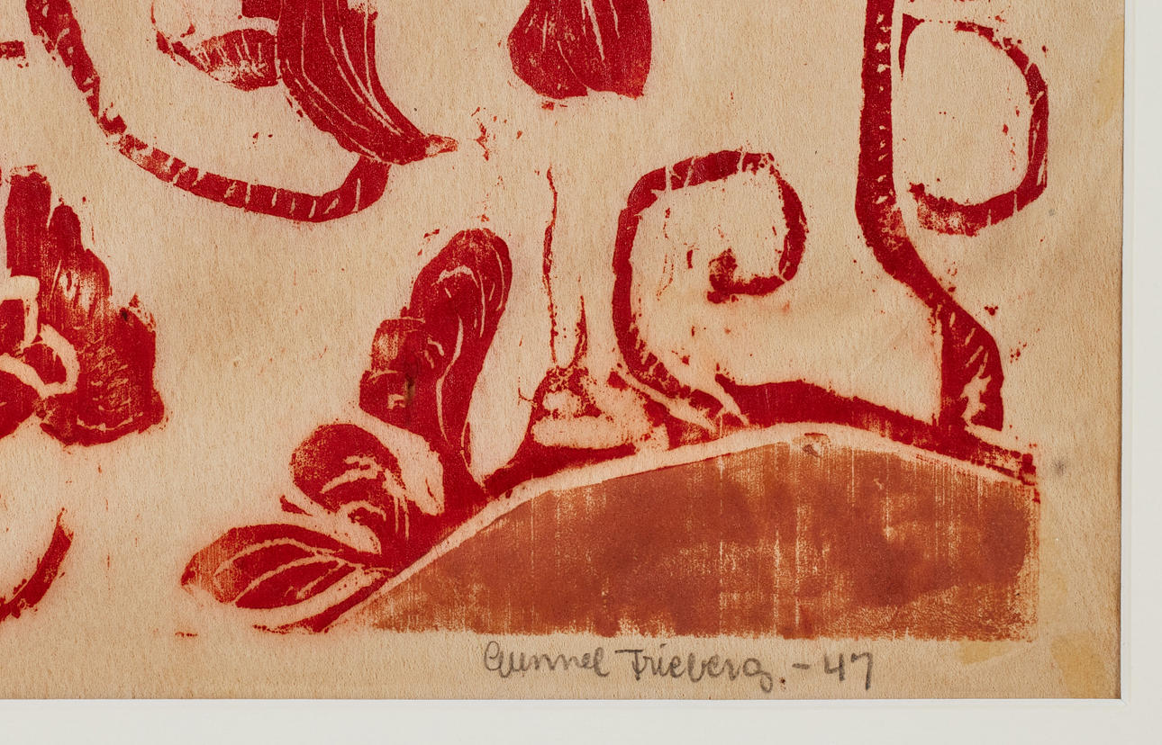 Träsnitt, 43 x 57 cm. Signerad och daterad 1947 samt "Eget tryck"