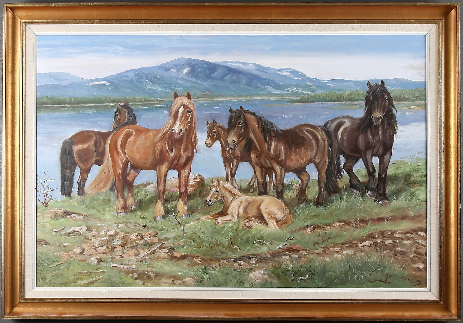 328082. HALVOR GUNHEIM TORSTENSEN. Hästar, olja på duk, signerad.
