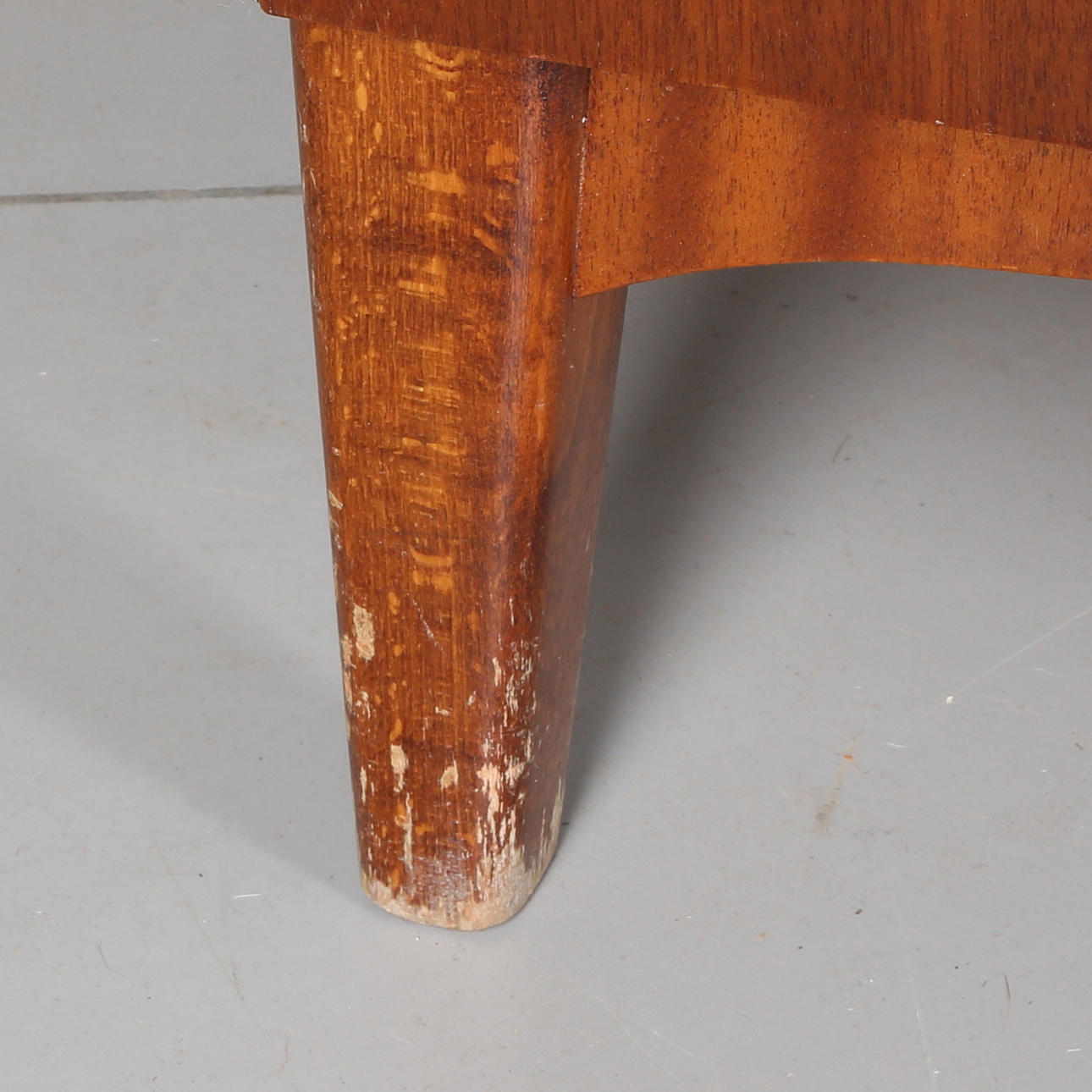 Bruksslitage, slagmärken, repor, fanérskada på skiva.