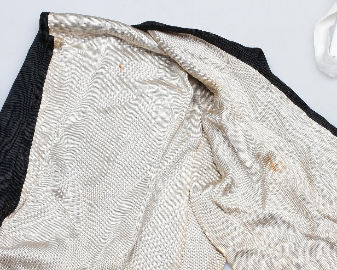 Halsduk med fläckar och lagning.