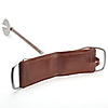 Portabel stol med uppfällbar sits, av metall och skinn, höjd 83 cm.