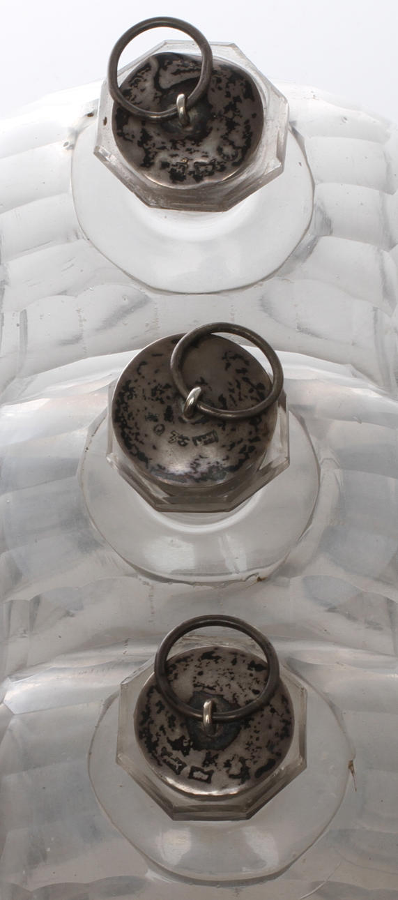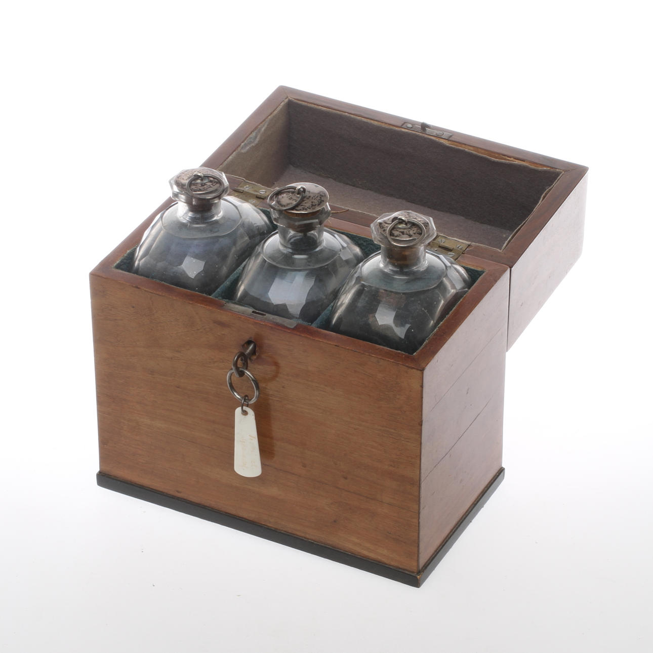 328261. FLASKOR 3 st glas i schatull, 1800-tal.