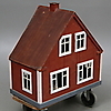 Medföljer dockskåpsmöbler, däribland skänkskåp märkt Gemla (höjd 18,5 cm).
