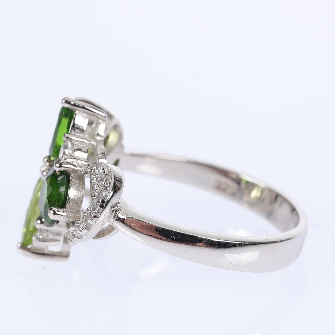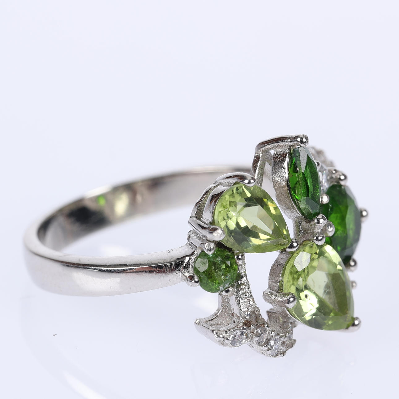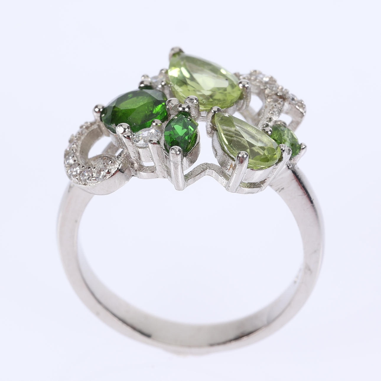 Ring i sterling silver med slipade turmaliner, peridoter och cubic zirkoner