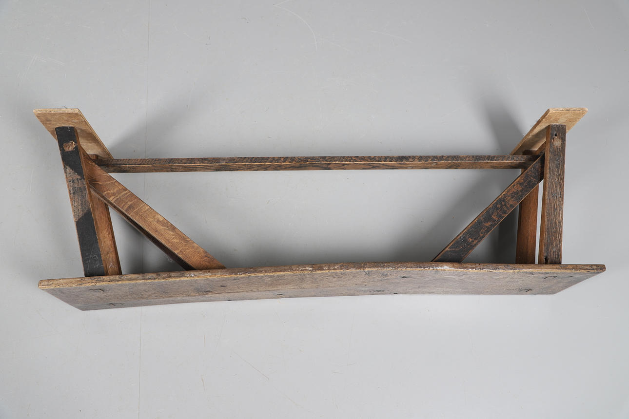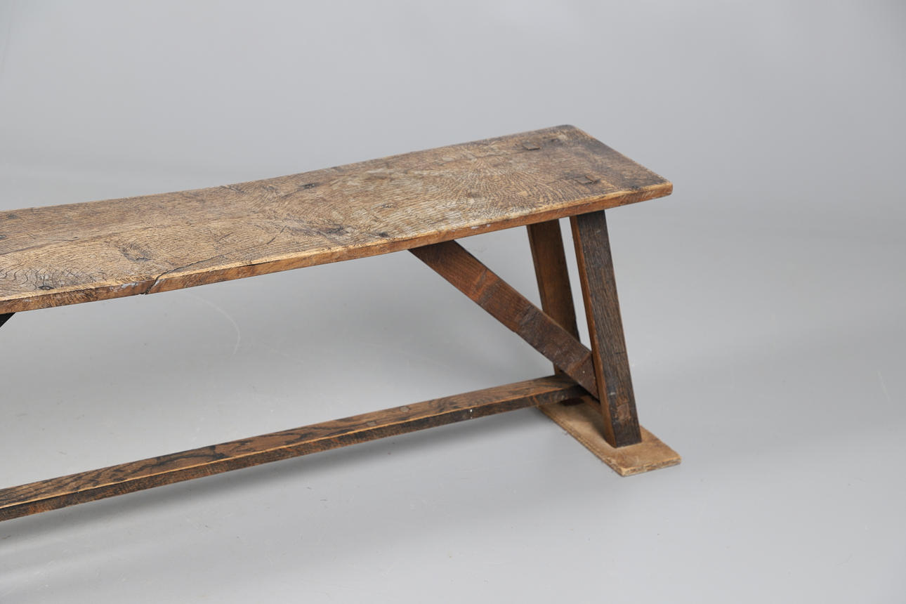 av rustik konstruktion, den enkla planktoppen ovanför spridda stöd förenade med bårar, 122 cm x 24 cm x 42 cm höga.
